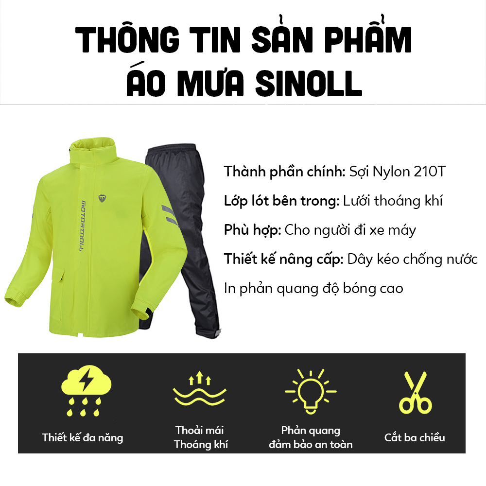 Với những tính năng ưu việt và thiết kế thông minh, áo mưa Sinoll không chỉ là một vật dụng thiết yếu trong tủ đồ của bạn mà còn là một người bạn đồng hành đáng tin cậy trong mọi điều kiện thời tiết. Sản phẩm này chính là sự lựa chọn hoàn hảo để đảm bảo an toàn và thoải mái cho bạn trong những ngày mưa.