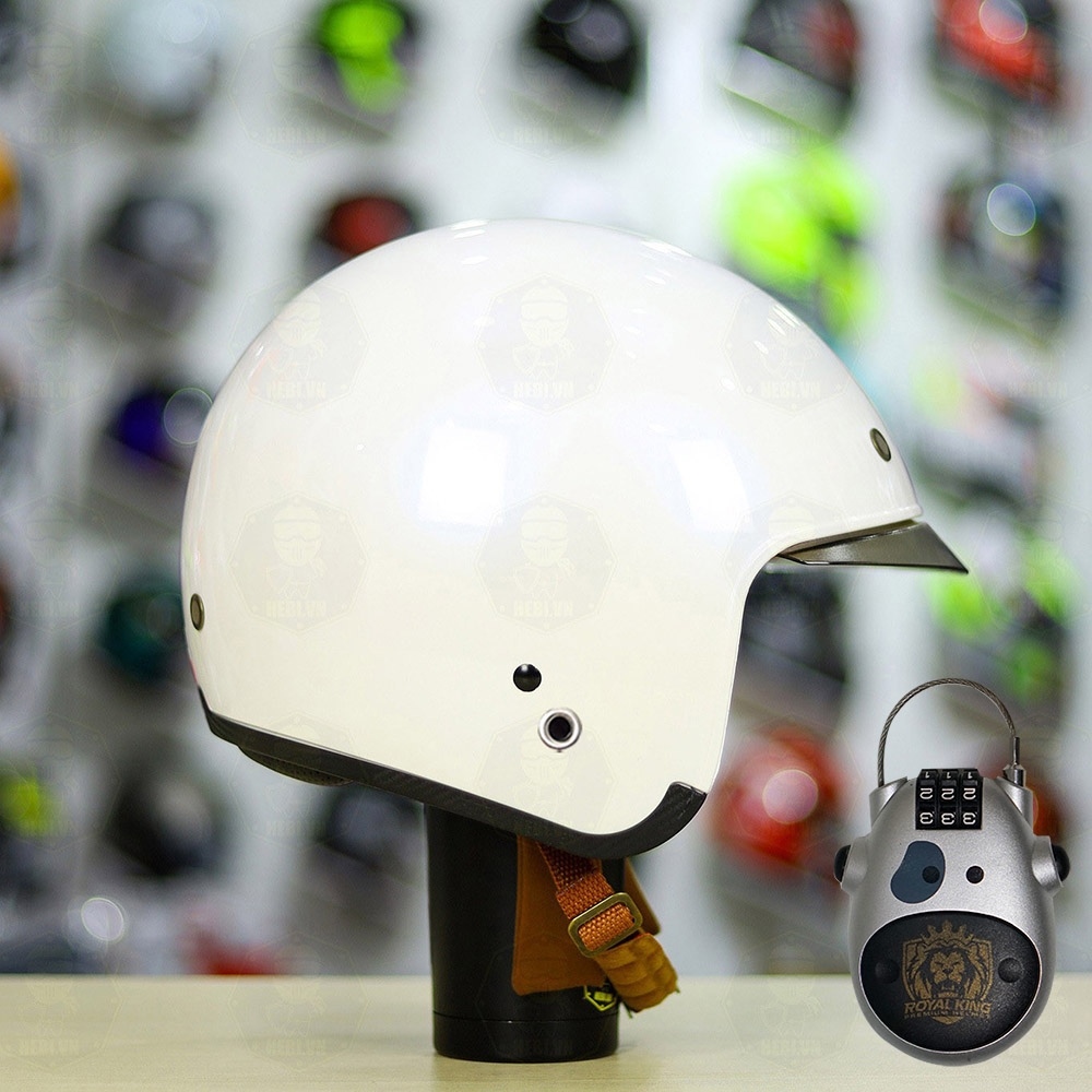 Combo Mũ 3/4 ROYAL M139 Trắng Bóng Độ Khóa Chống Trộm
