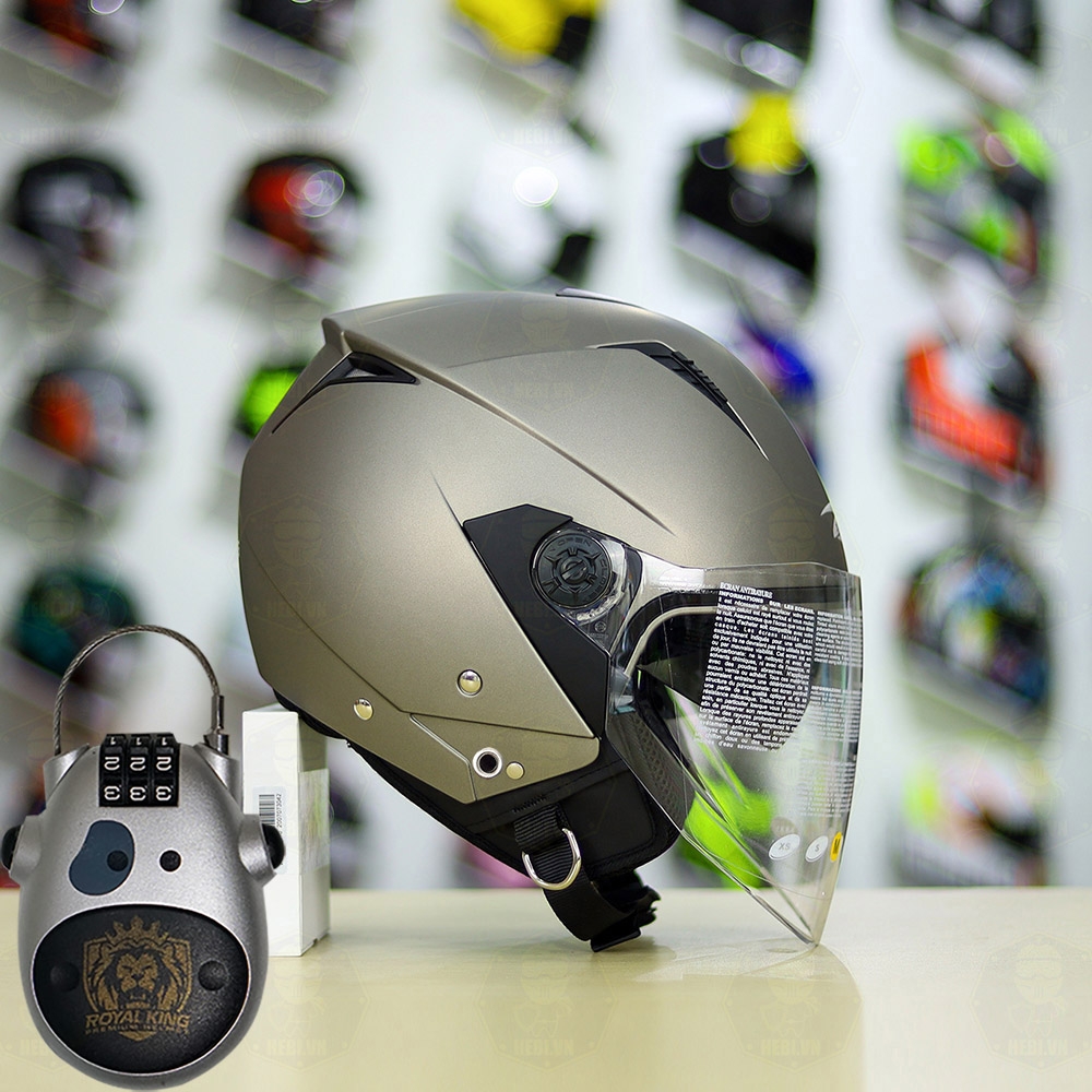 Combo Mũ 3/4 ZEUS 205 Xám Nhám Độ Khóa Chống Trộm