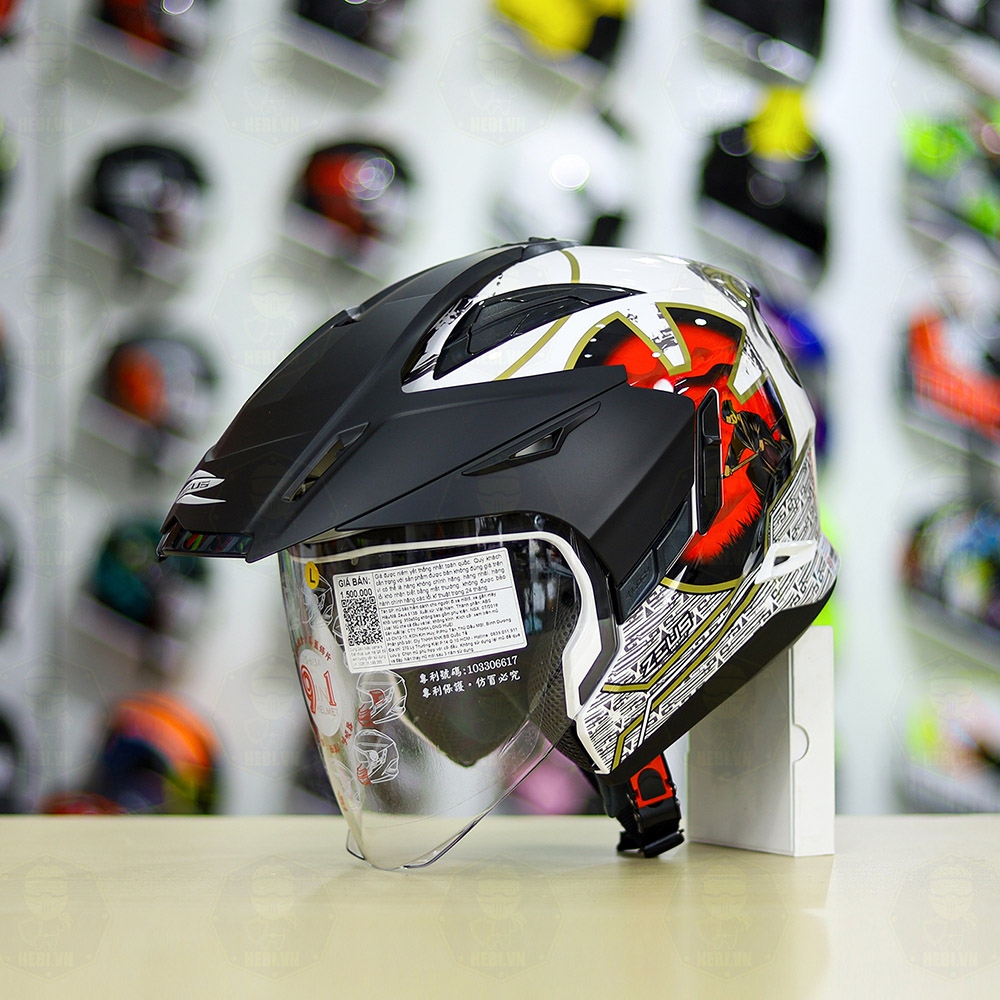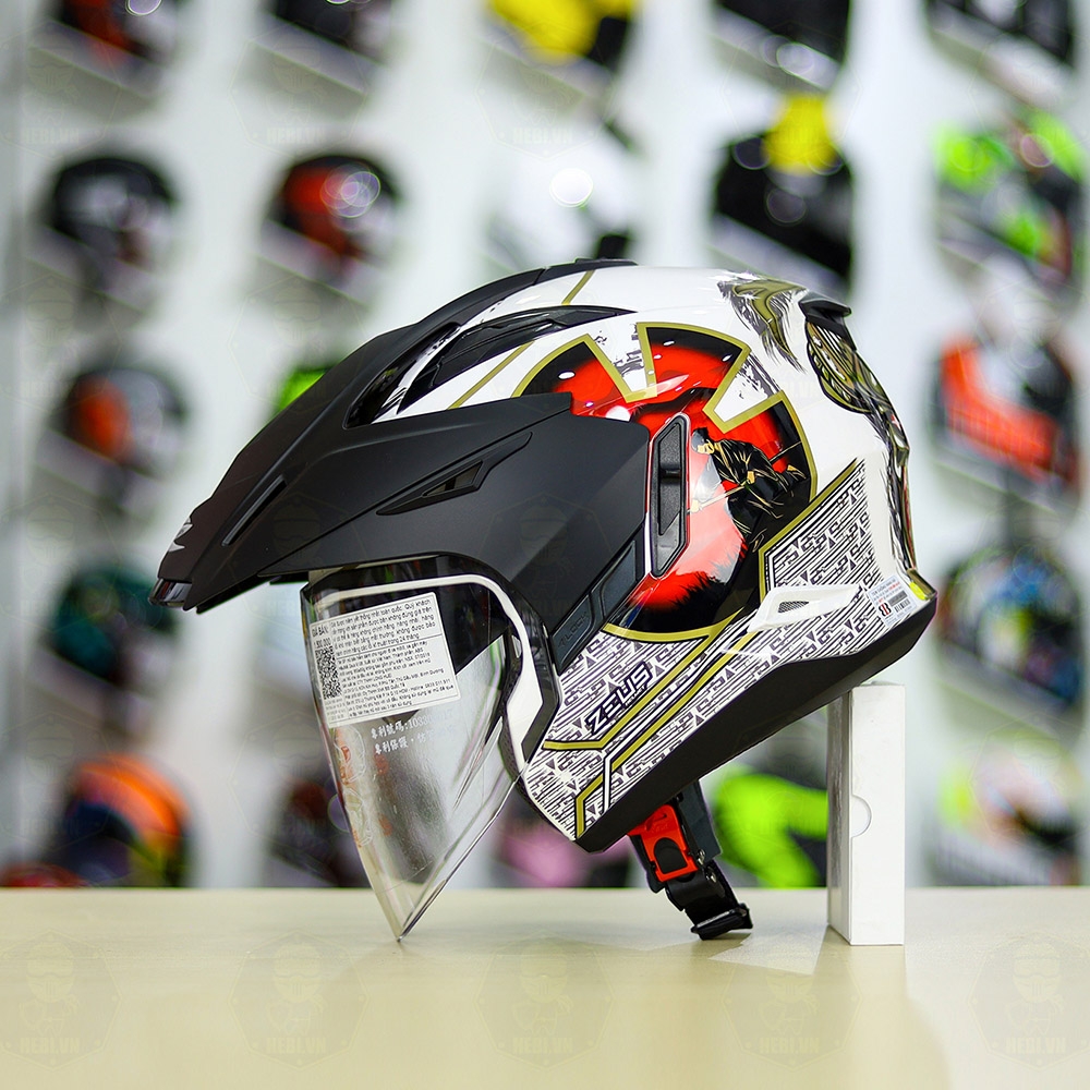 Combo Mũ 3/4 ZEUS 613b Samurai Trắng Độ Khóa Chống Trộm