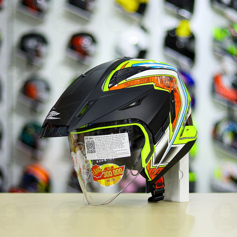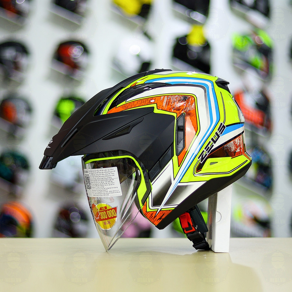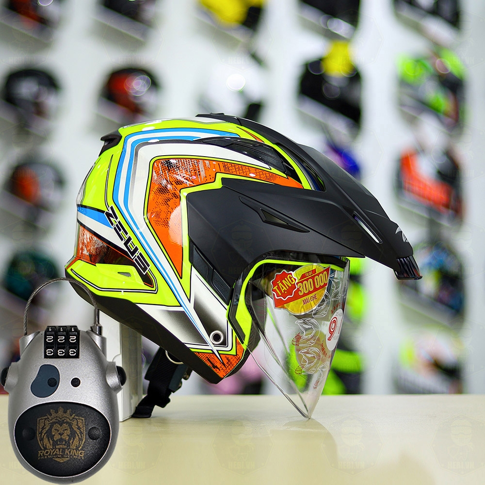Combo Mũ 3/4 ZEUS 613b Vàng Cam Xanh Độ Khóa Chống Trộm