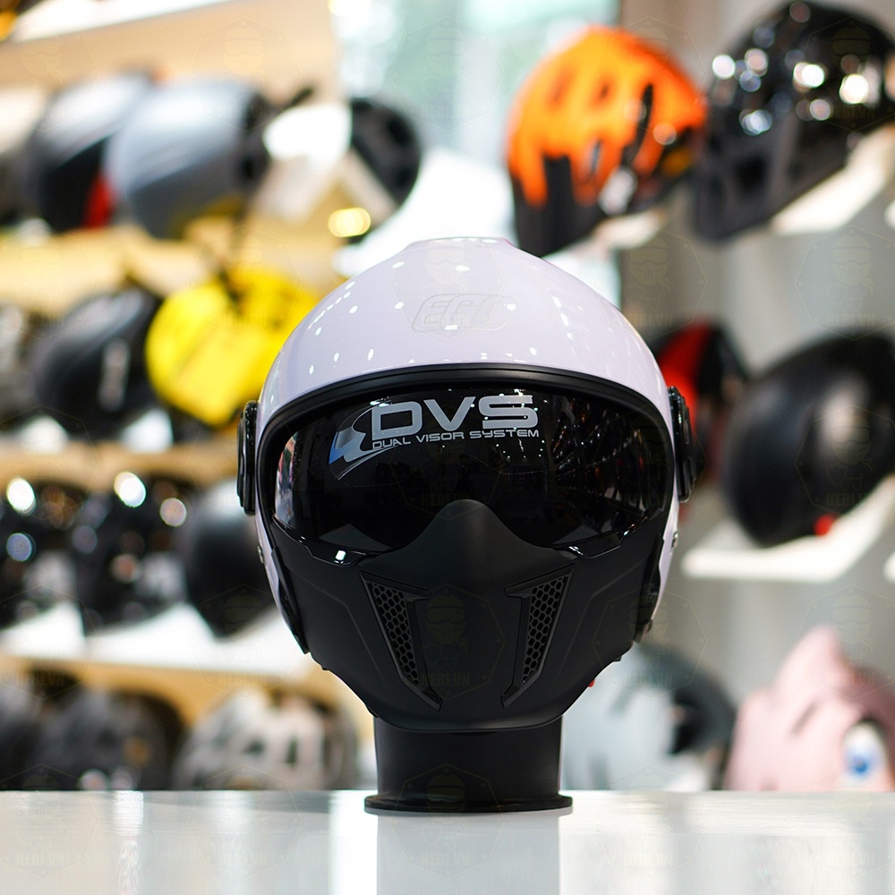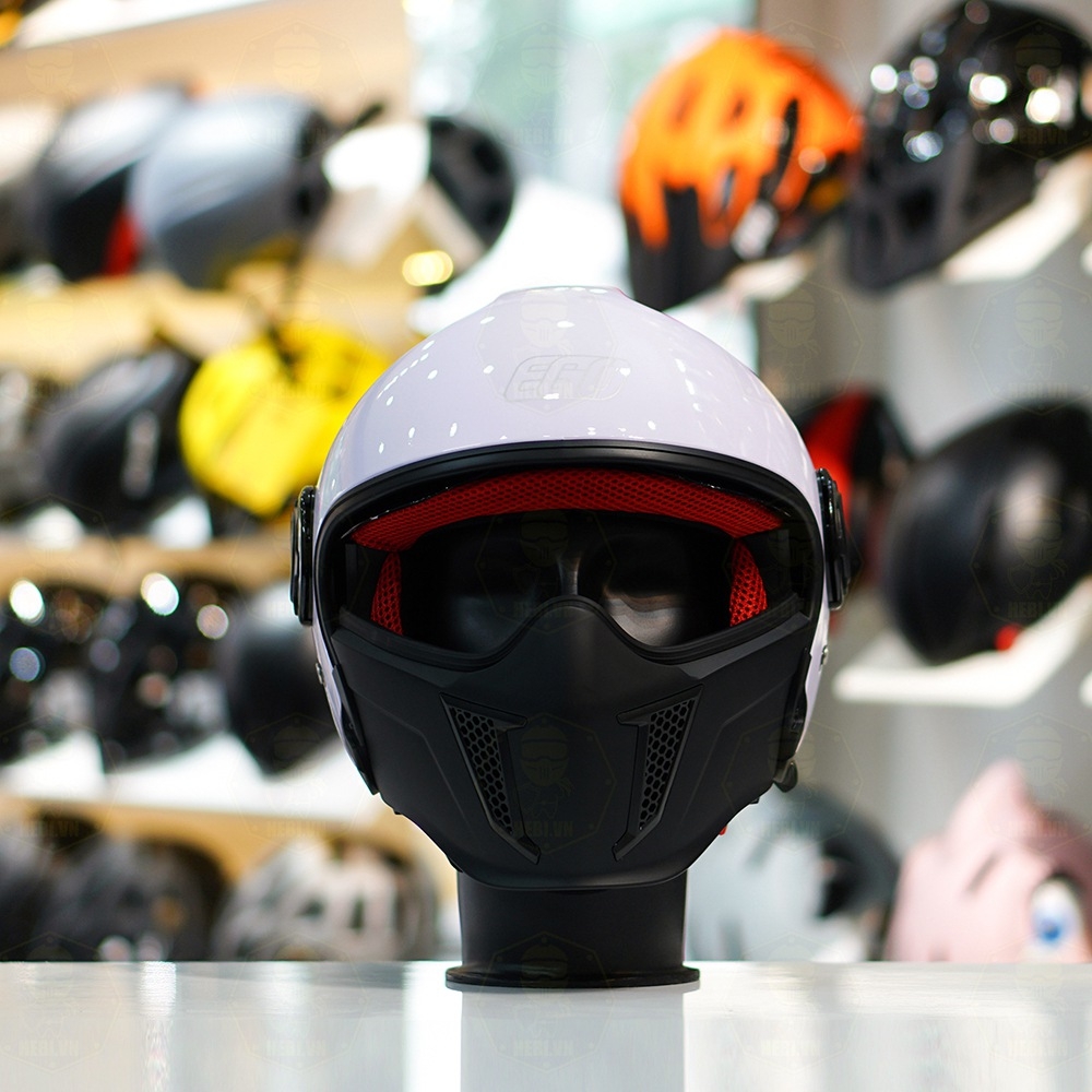 Combo Mũ EGO E5 Trắng Bóng - Mặt Nạ - Kính Màu - Freeship