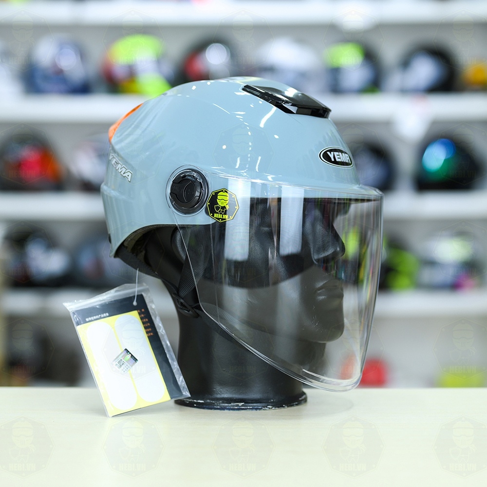 - Mũ bảo hiểm nửa đầu Yema còn được trang bị kính che tiện lợi, giúp che chắn tốt hơn cho đôi mắt của bạn trong các chuyến đi. Không chỉ vậy, mũ bảo hiểm nửa đầu Yema còn độ bảo vệ tối ưu, giúp bảo vệ đầu của bạn khi tham gia giao thông.