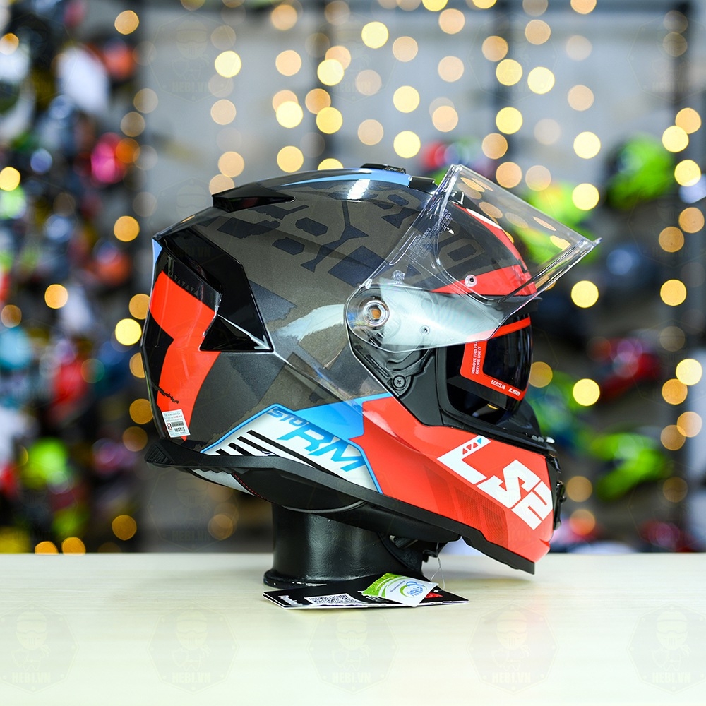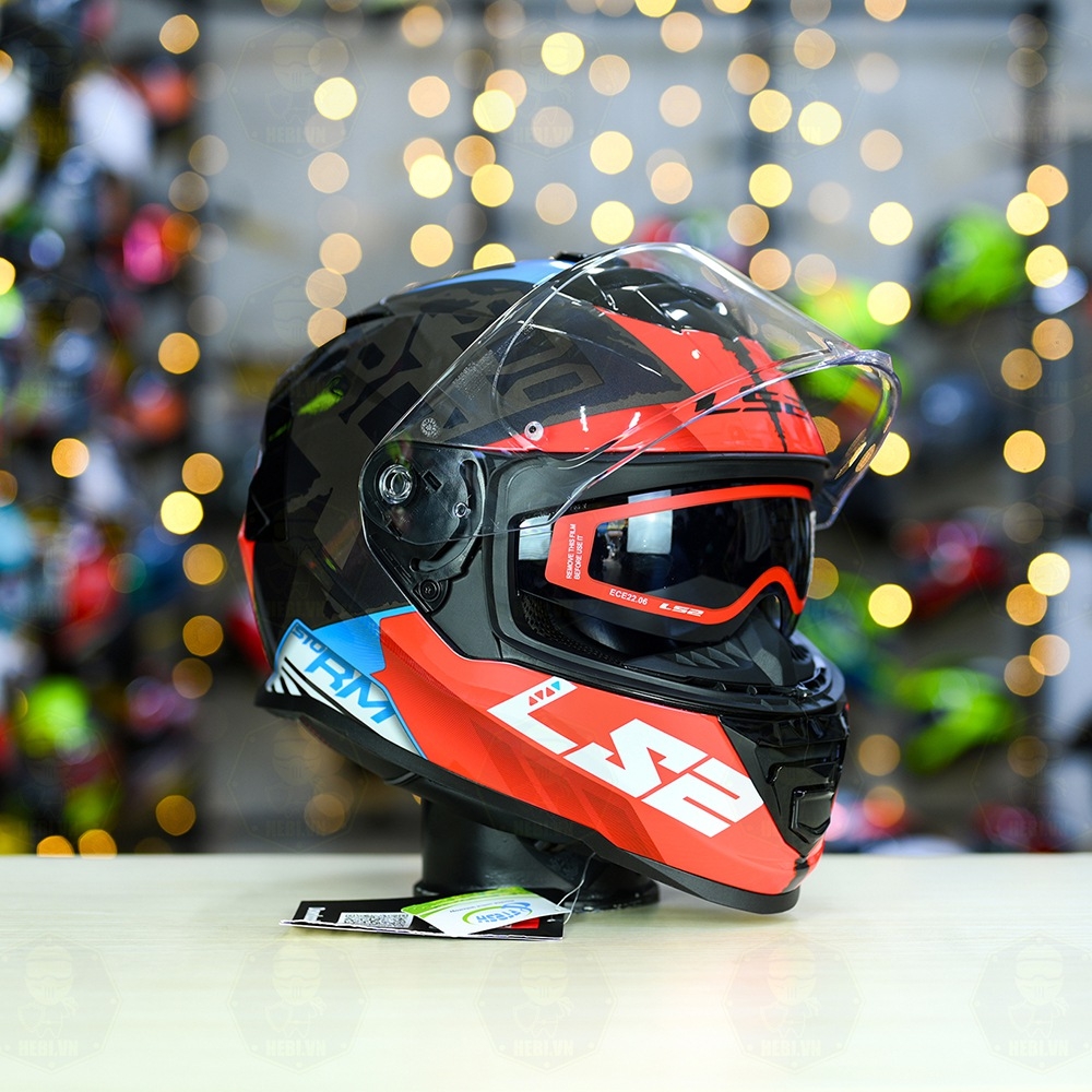 Phần vỏ ngoài LS2 FF800 Storm làm từ chất liệu KPA độc quyền, có 2 khuôn vỏ cho size S (trọng lượng 1.440g) < M - L - XL - XXL dùng chung khuôn vỏ to (trọng lượng 1.550 - 1.600g). Phần kính của mũ này được hãng dùng chung loại kính với LS2 FF320 và LS2 FF353, làm từ chất liệu PC siêu bền, được bảo hành nứt vỡ 1 năm( chỉ có tại Hebi). Kính dùng chất liệu tinh khiết, trong các bài thử truyền sáng độc lập cho độ truyền sáng lên 94%( hơn cả kính của Shark và AGV chỉ 93%). Đặc biệt hãng còn tặng cả Pinlock cấp độ 70, giúp bạn vẫn đảm bảo tầm nhìn tốt, không bị mờ mặt trong của kính khi đi trong trời lạnh, trời mưa hay sương mù.
