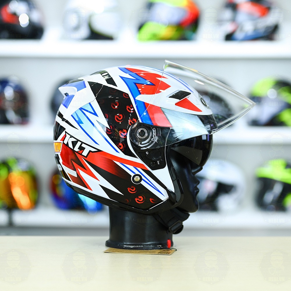 Mũ KLT Venom là dòng mũ 3/4 2 kính có thiết kế giống với mũ KYT Venom. Mũ dành cho các bạn trẻ năng động, yêu thích sự nổi bật và không quá yêu cầu về độ tỉ mỉ cao.