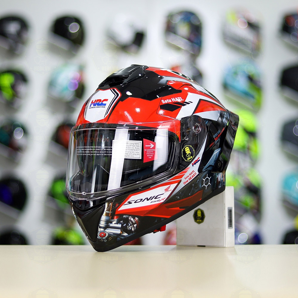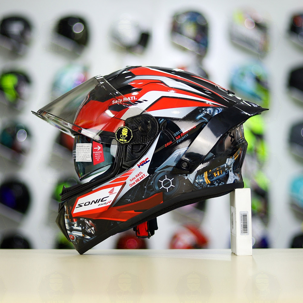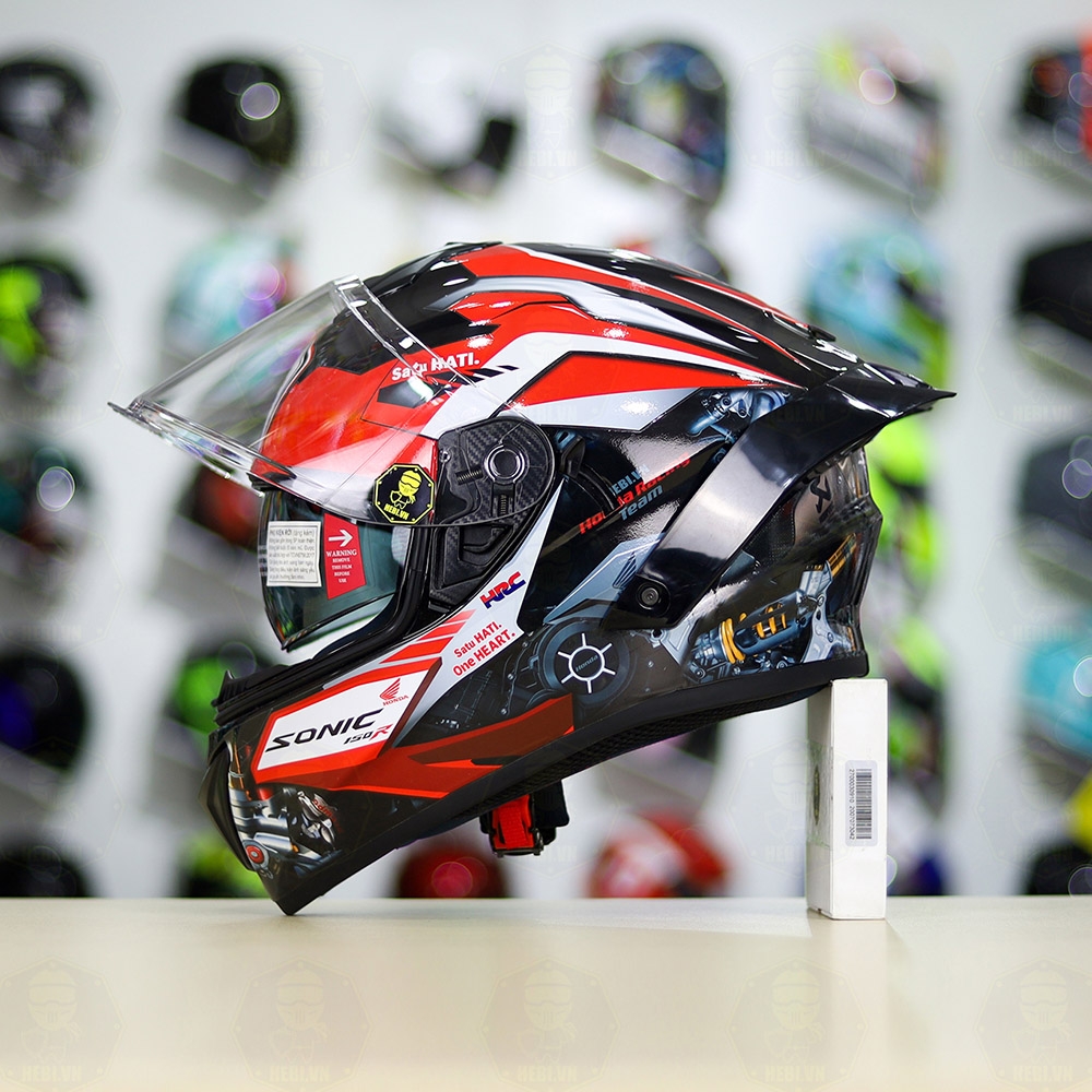 Full Combo Mũ EGO E81 Tem Decal Honda Sonic Trắng Đỏ FREESHIP