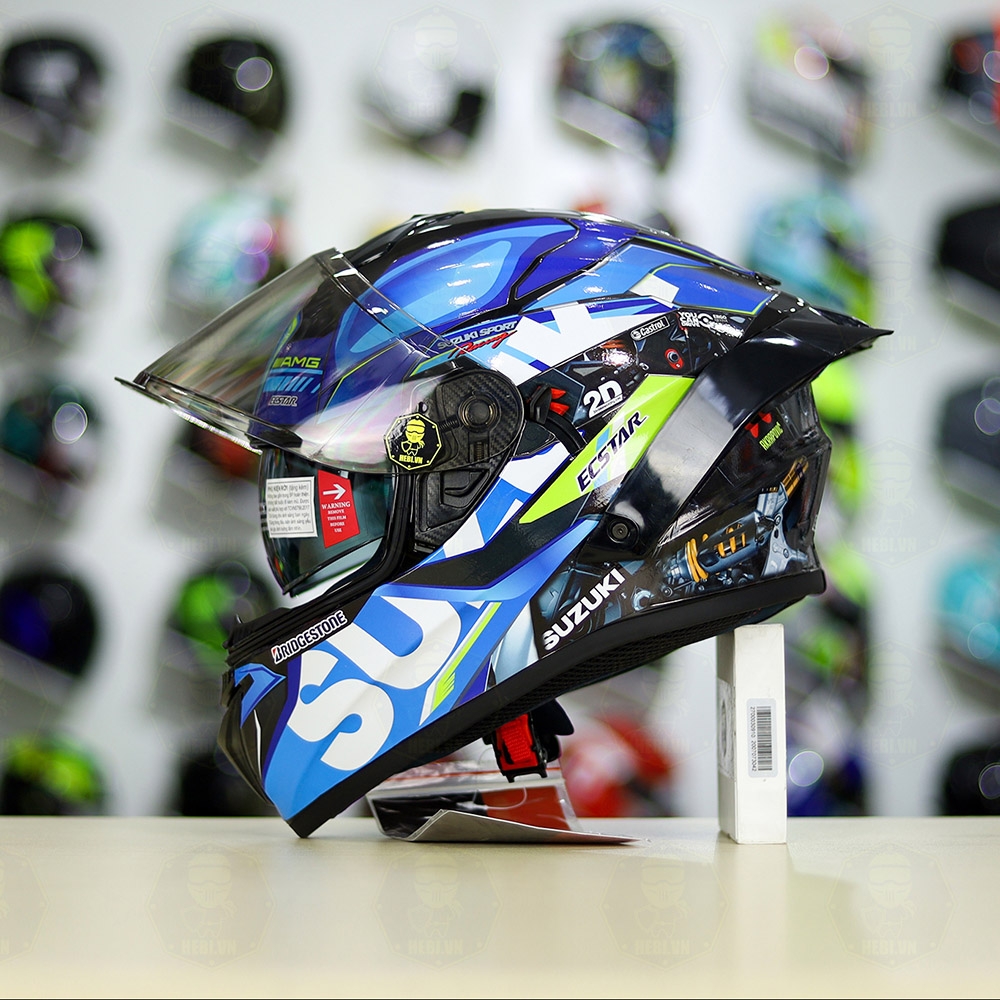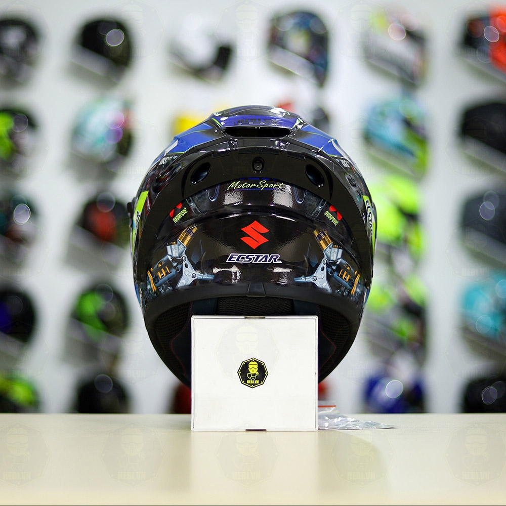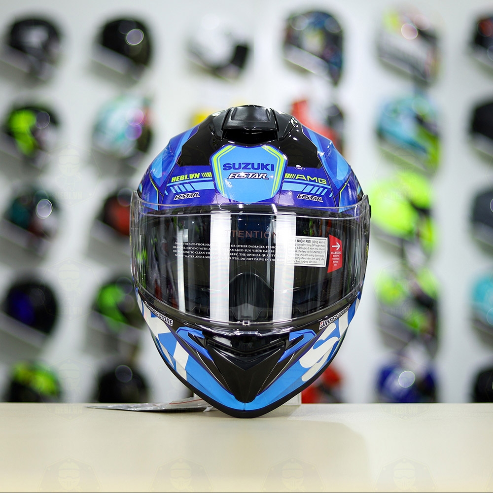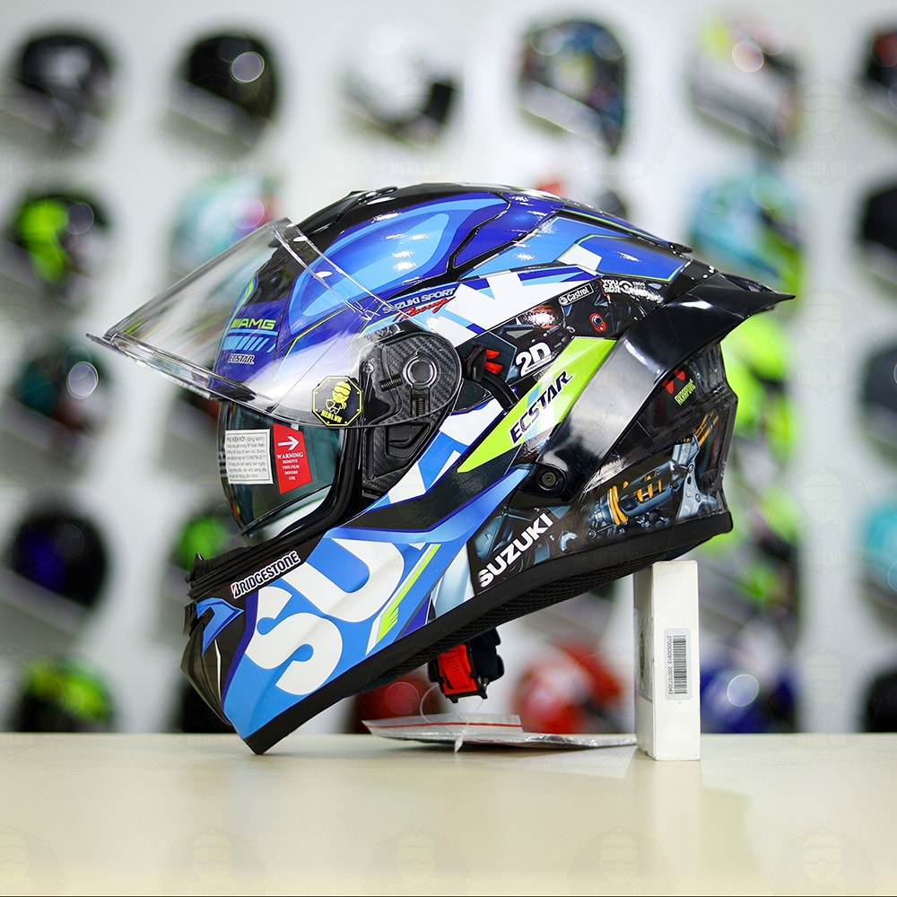 Full Combo Mũ EGO E81 Tem Decal SUZUKI ECSTAR Xanh Trắng Vàng FREESHIP