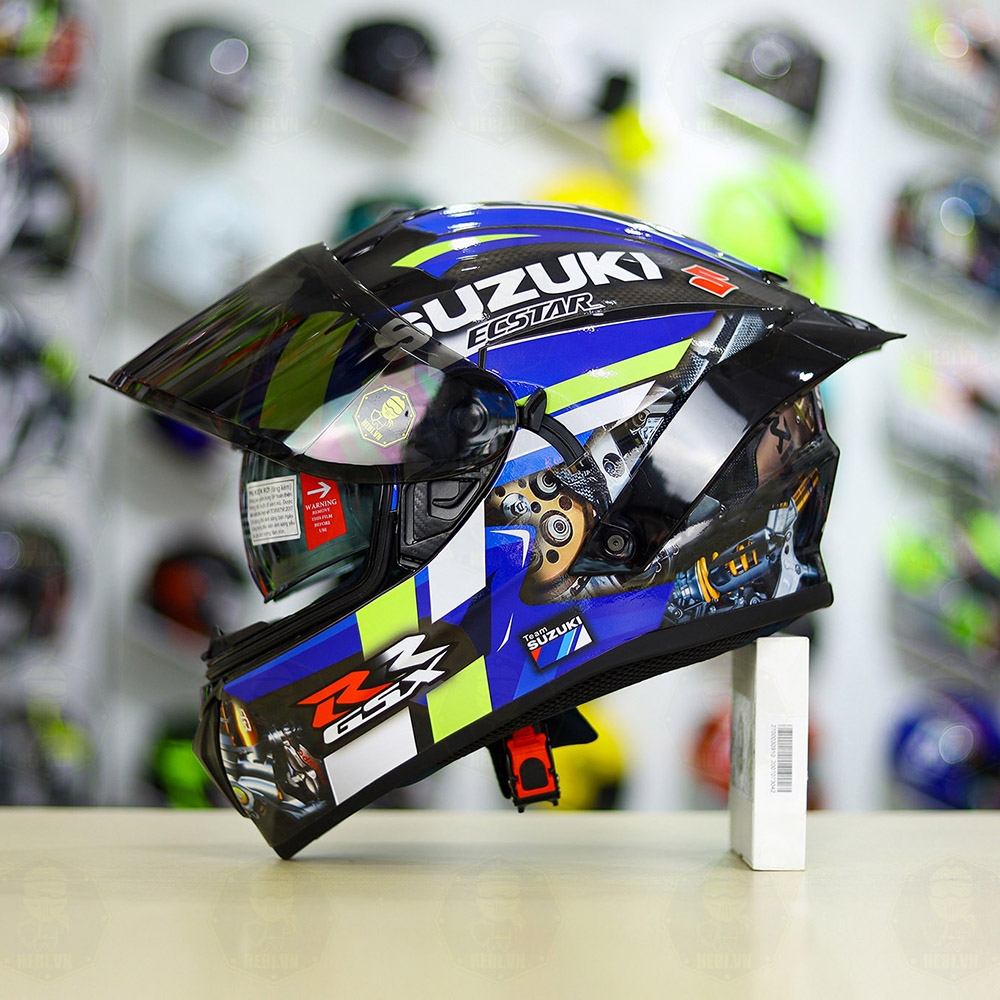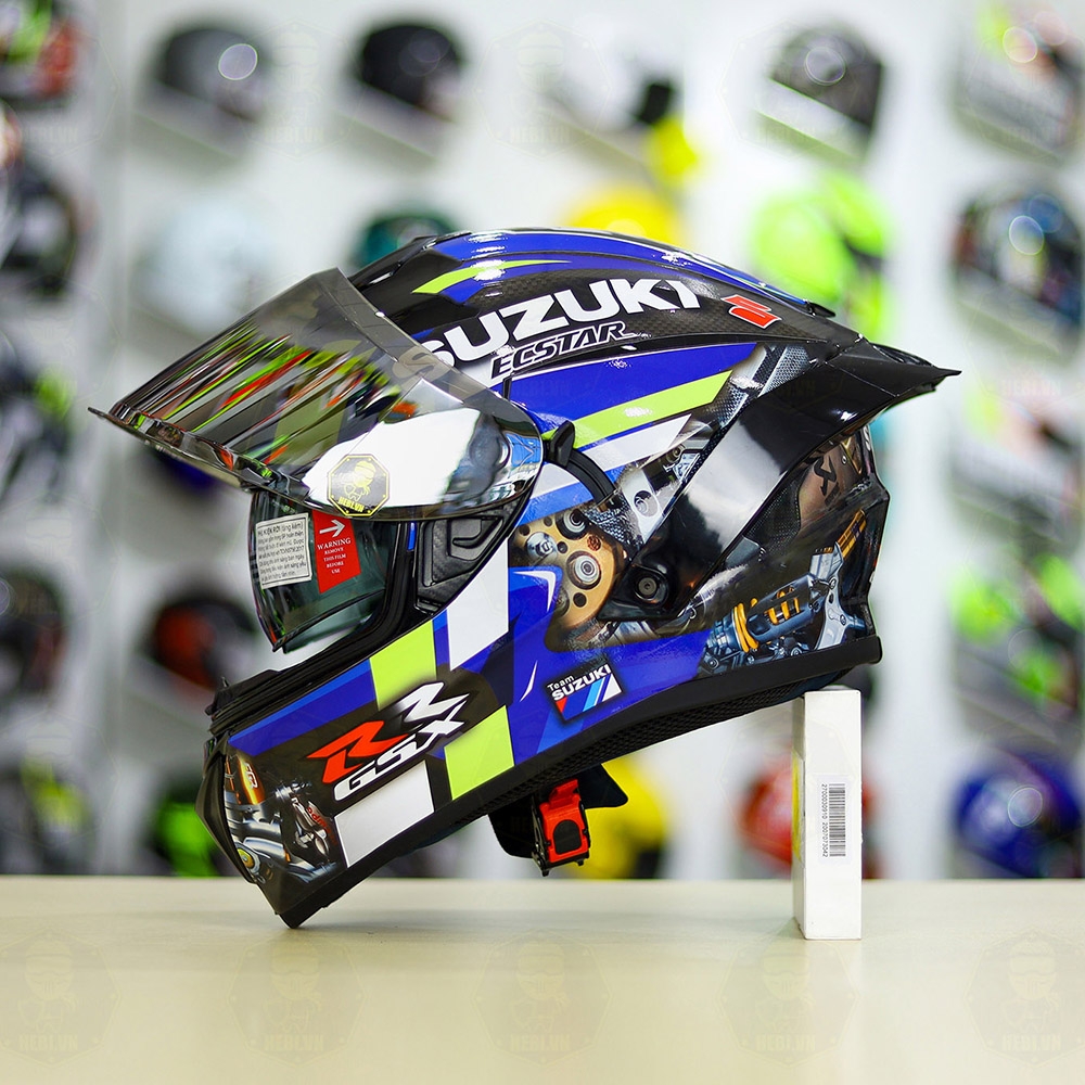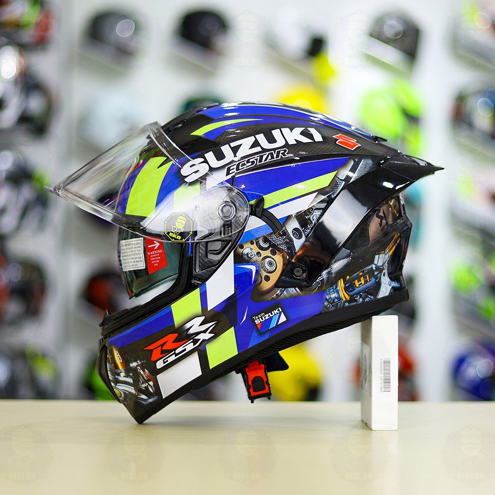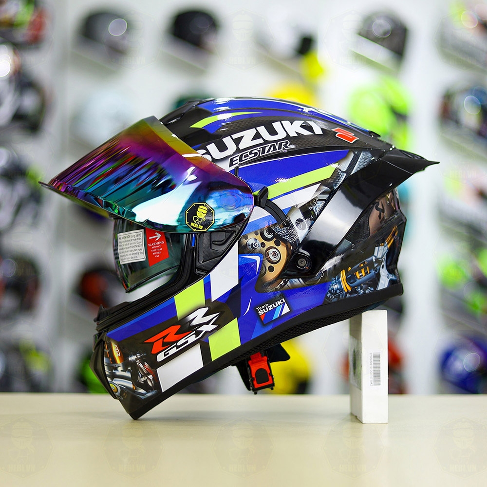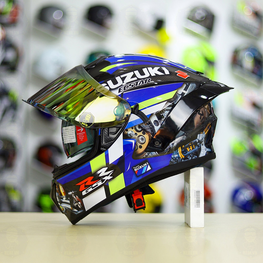 Full Combo Mũ EGO E81 Tem Decal SUZUKI GSX Xanh Vàng FREESHIP