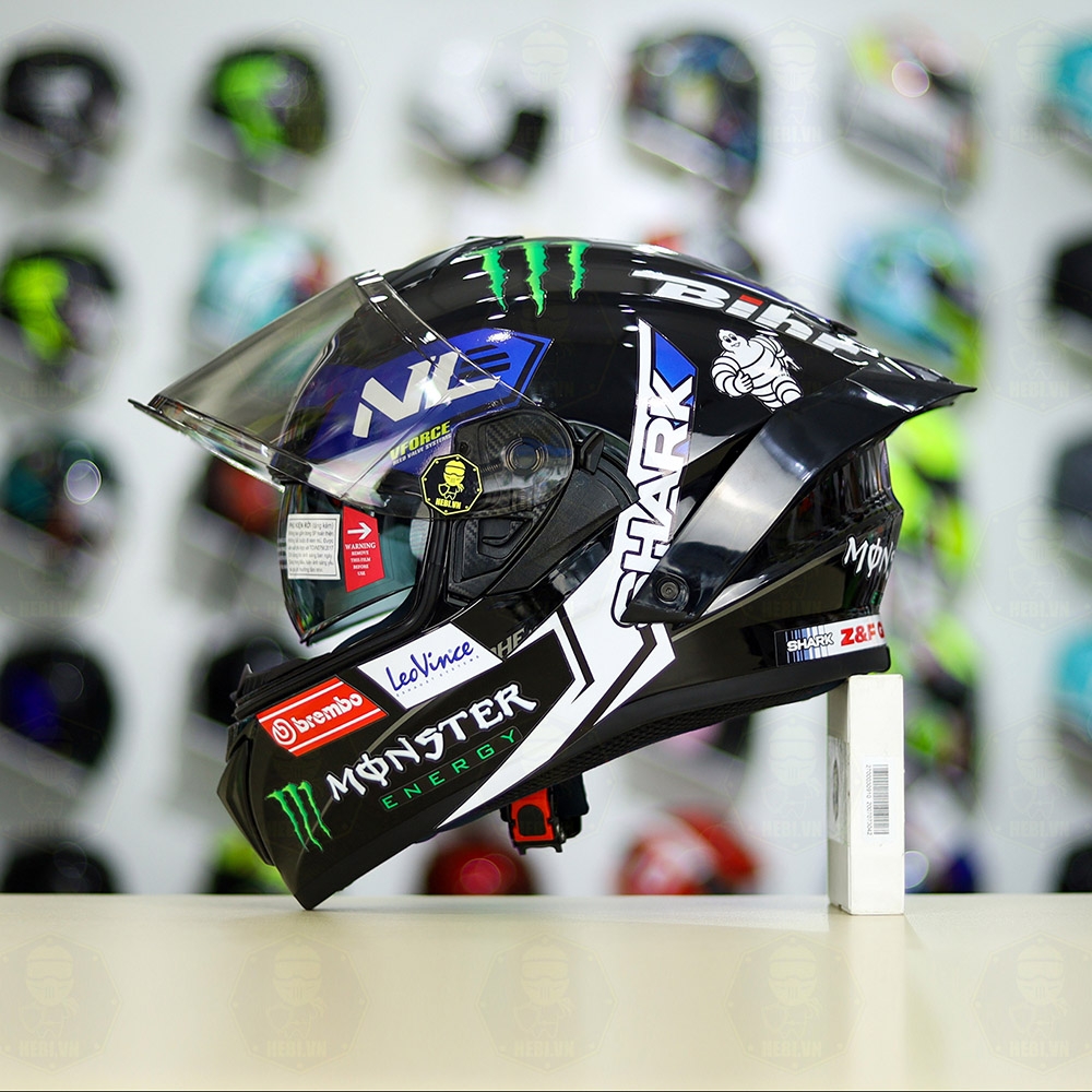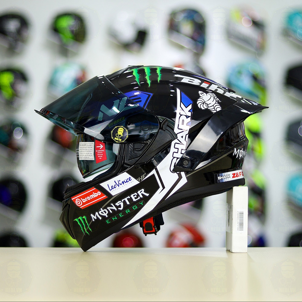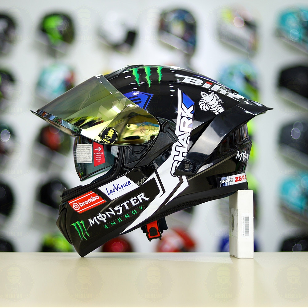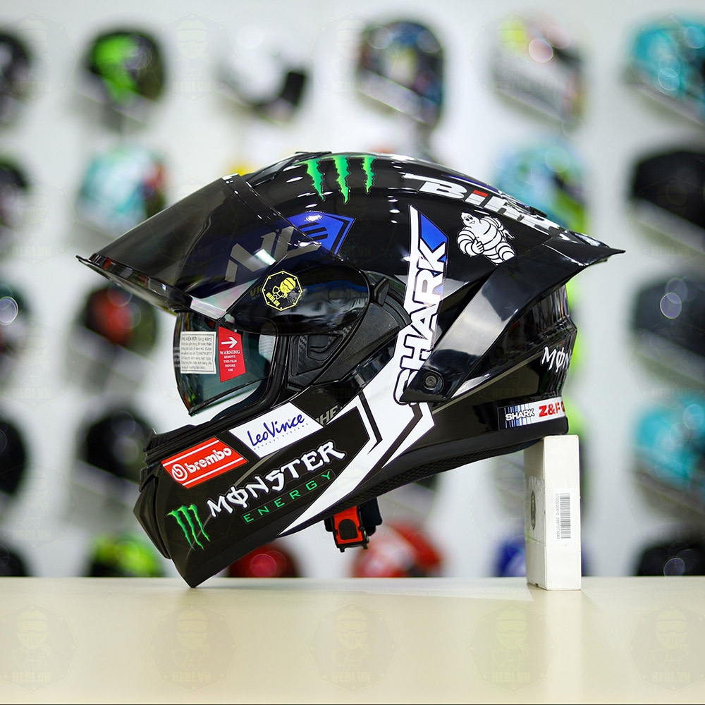 Mũ Fullface EGO E81 Đen Bóng + Tem SHARK Monster Xanh FREESHIP