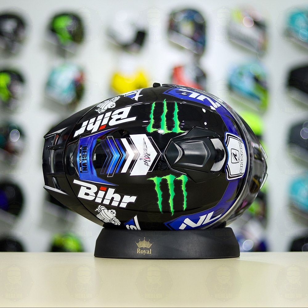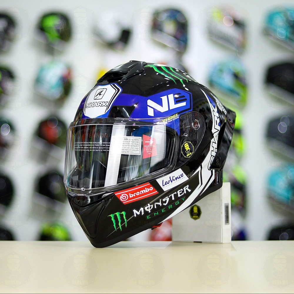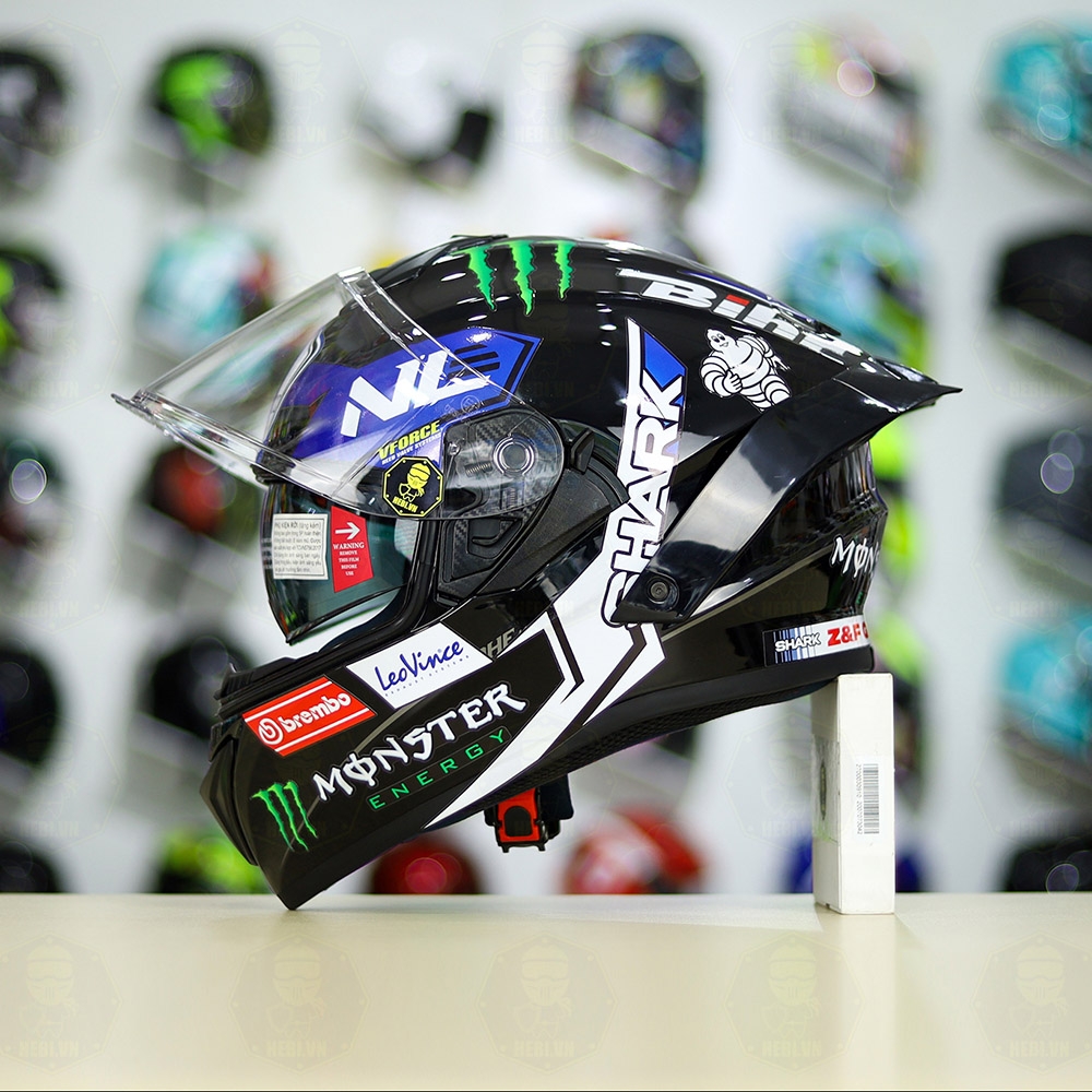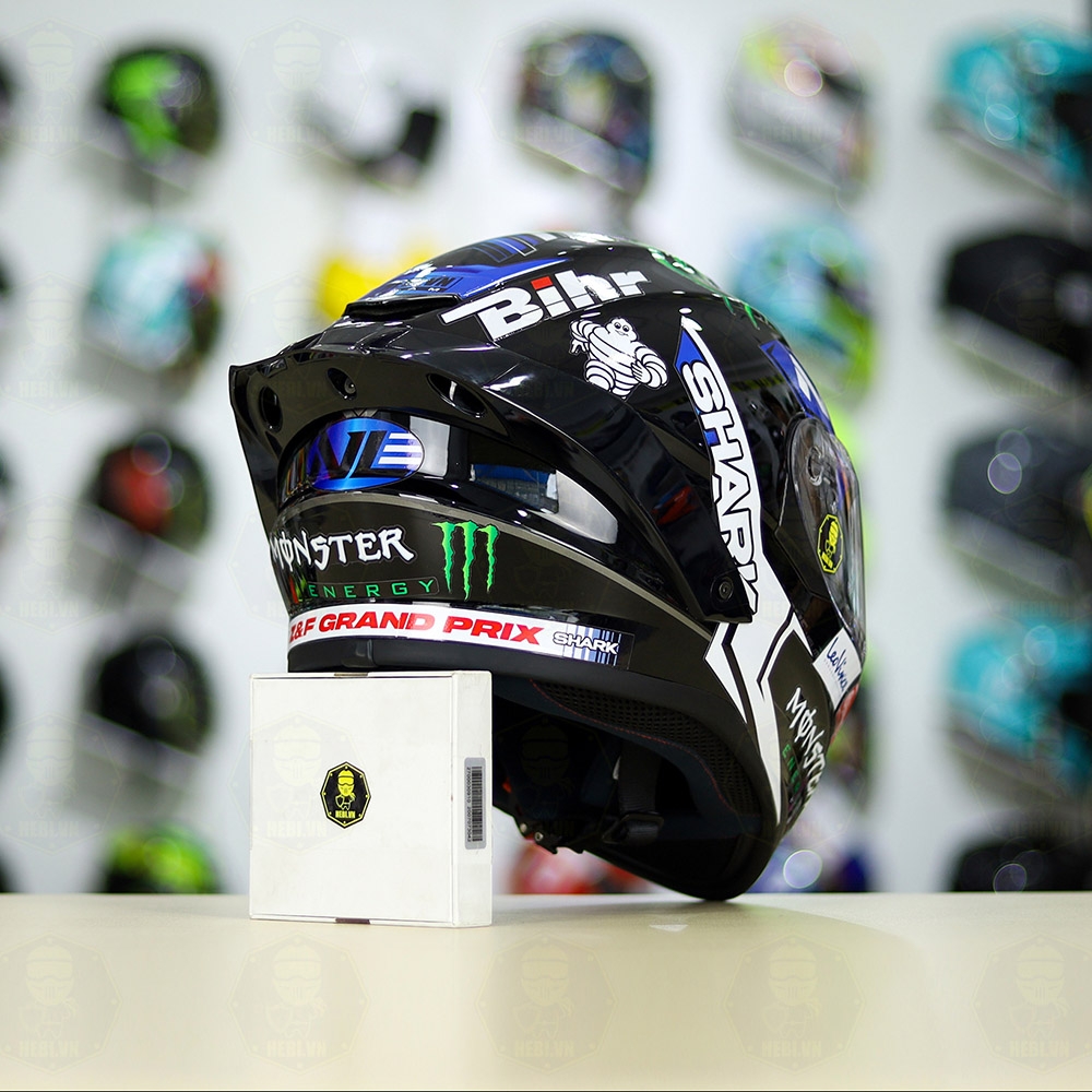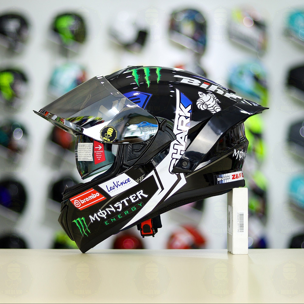 Mũ Fullface EGO E81 Đen Bóng + Tem SHARK Monster Xanh FREESHIP