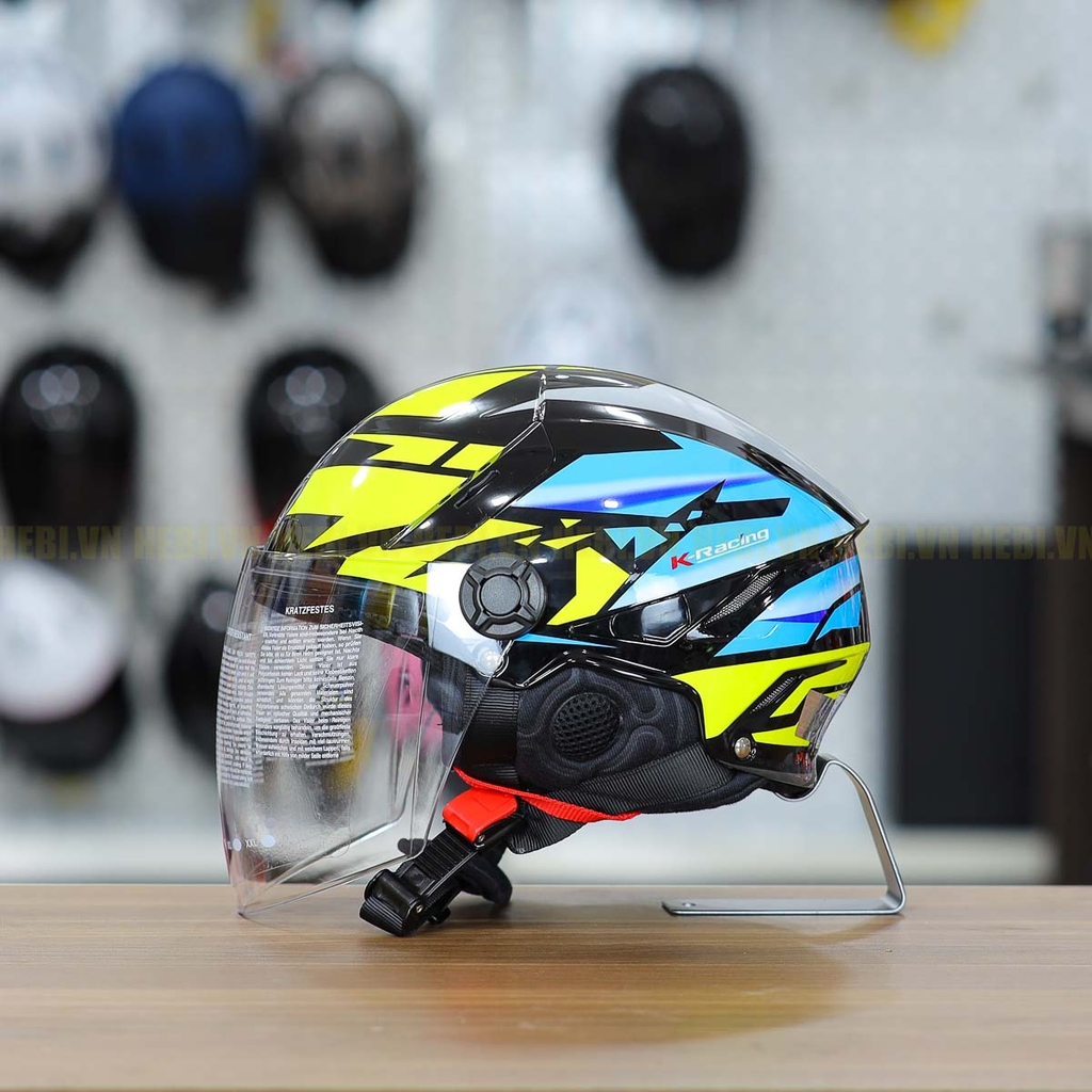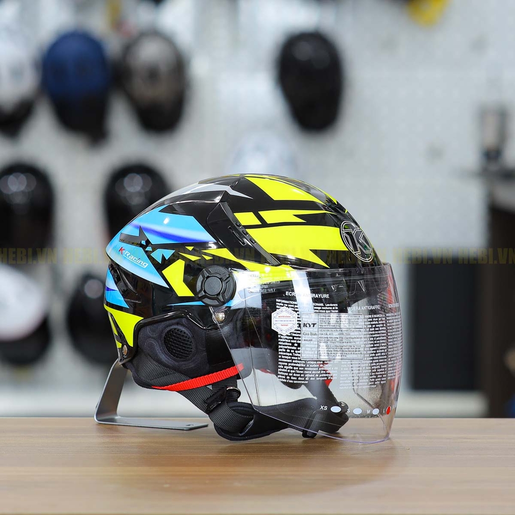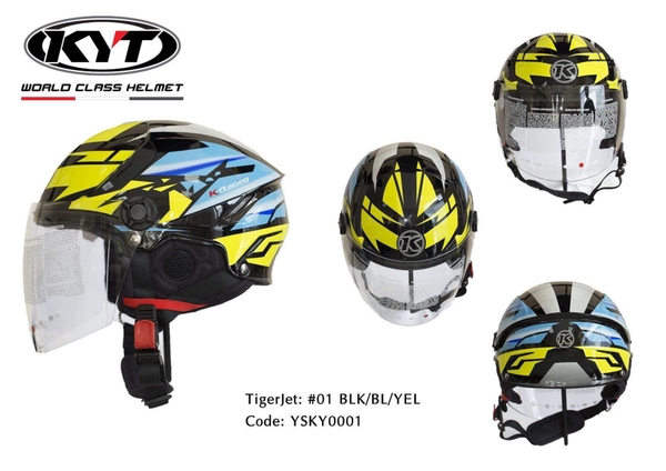 Mũ 1/2 KYT TigerJet Đen Xanh Vàng Nhỏ Gọn Nhẹ FREESHIP