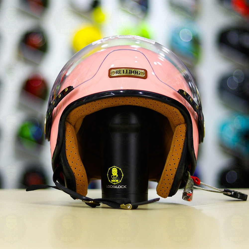 Ốp kính làm bằng hợp kim màu đồng cổ điển có in thương hiệu Bulldog tôn lên một nét đẹp thẩm mĩ cho tổng thể chiếc mũ: