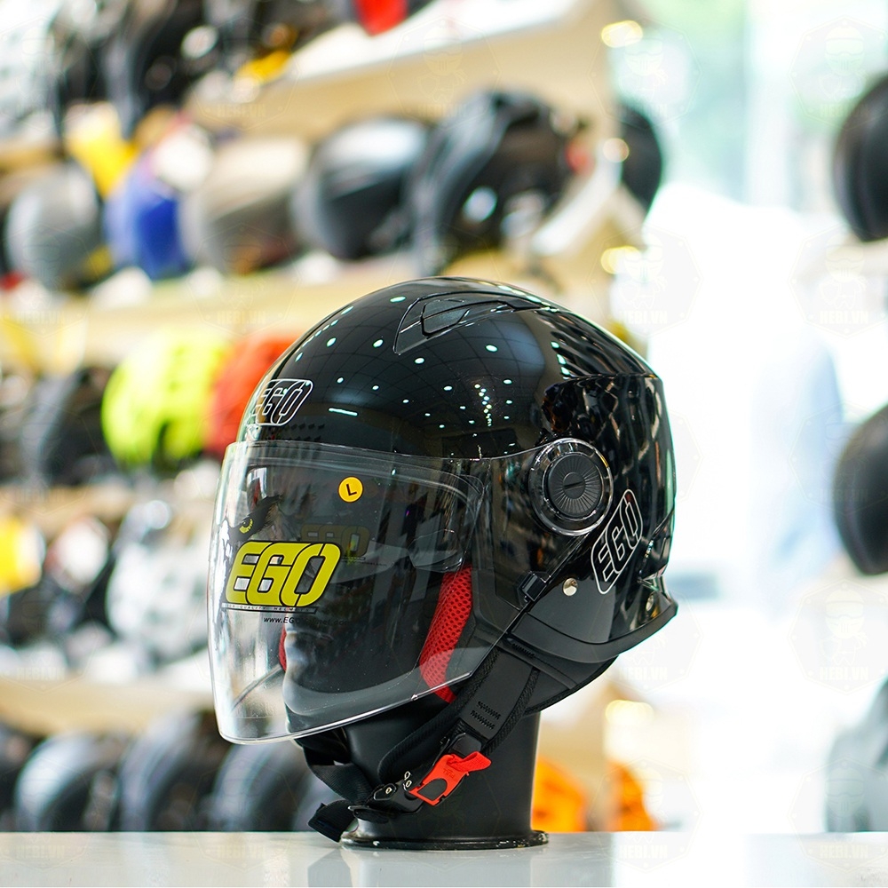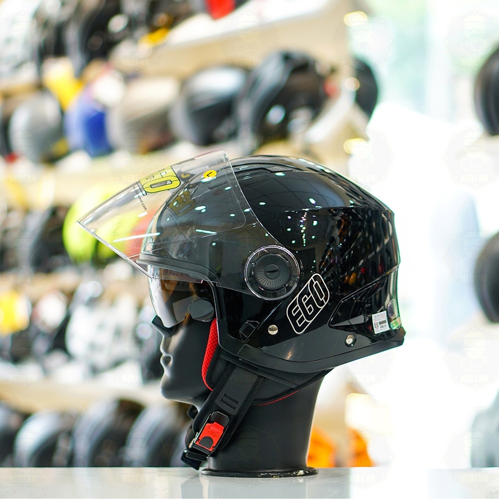Mũ 3/4 EGO E41 Đen Bóng 2 Kính FREESHIP