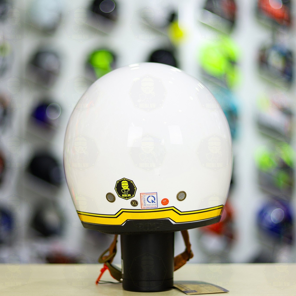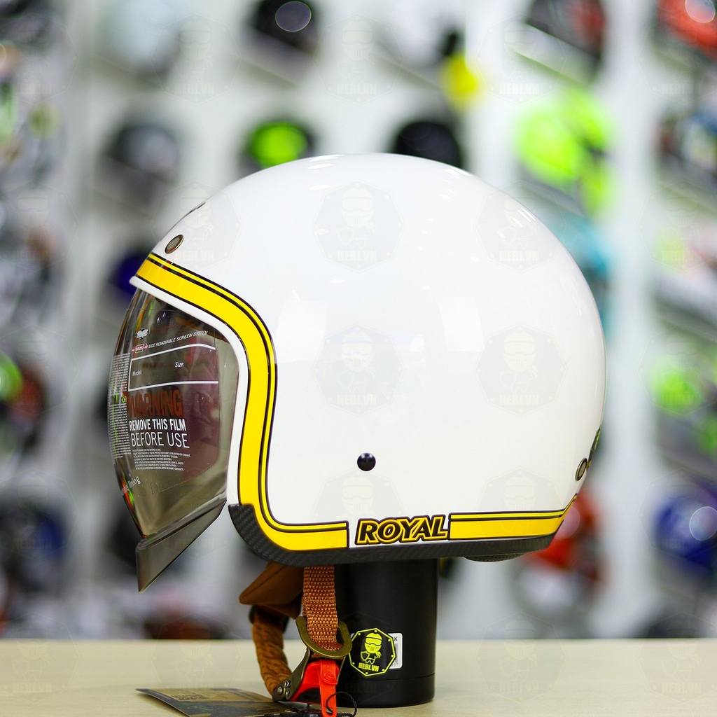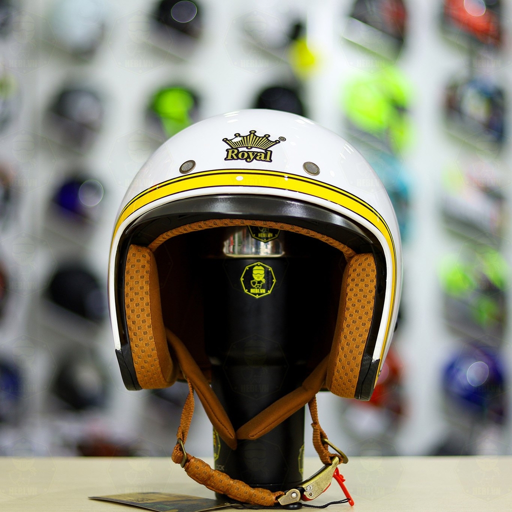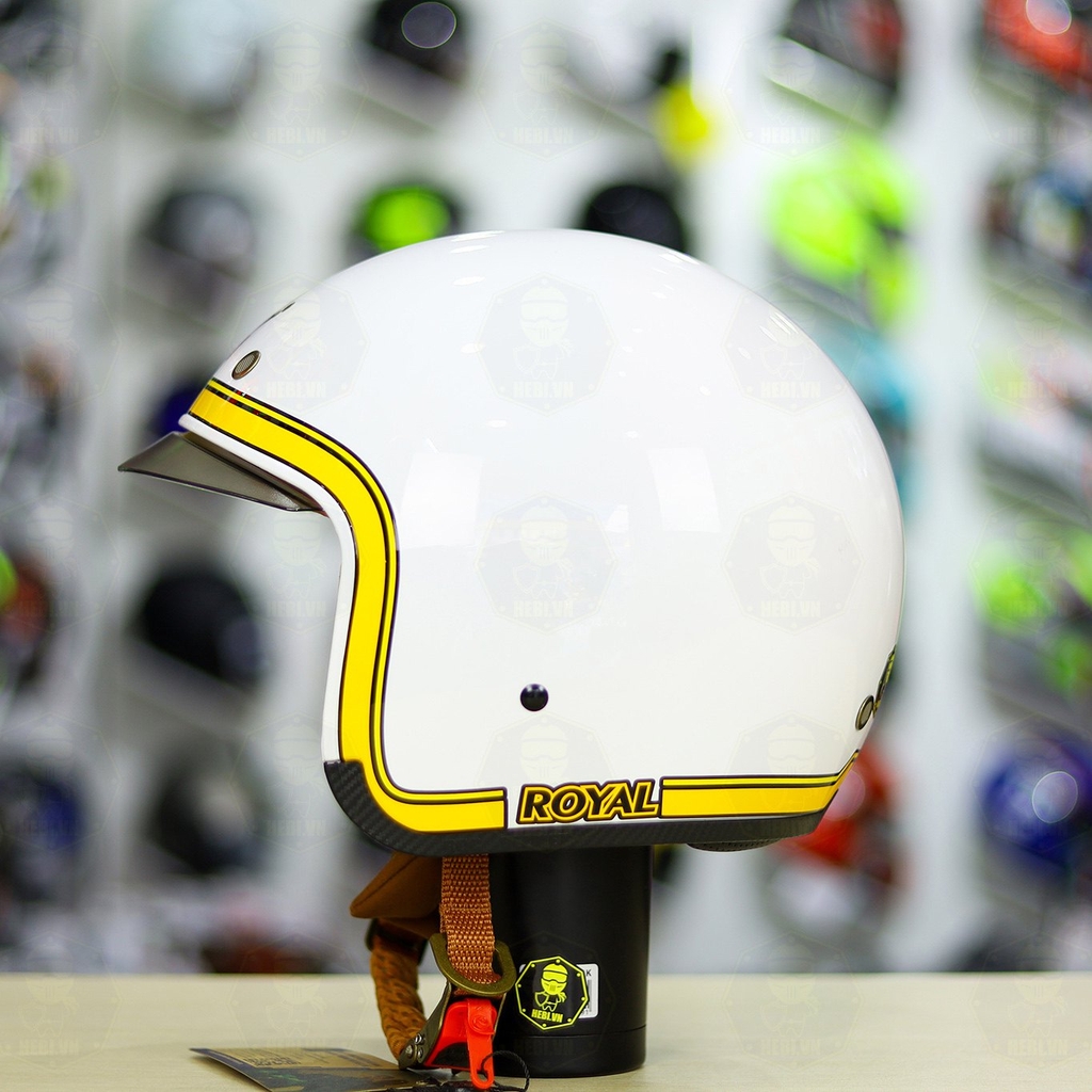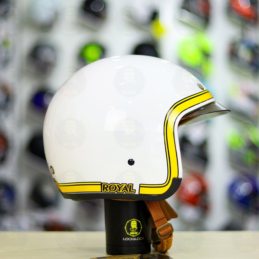 Mũ 3/4 Royal M139 V10 Trắng Viền Vàng Bóng FREESHIP
