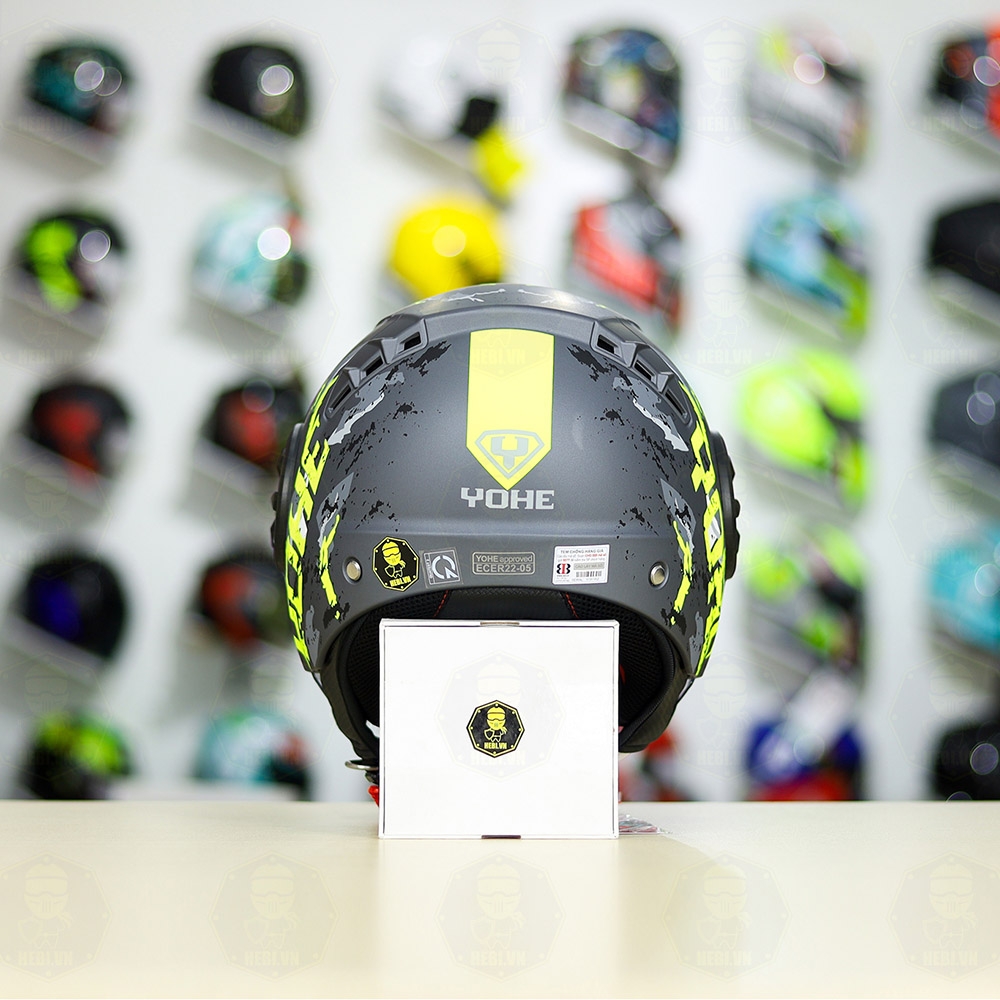 Mũ 3/4 YOHE 851 Camo Xám Vàng Neon Nhám FREESHIP