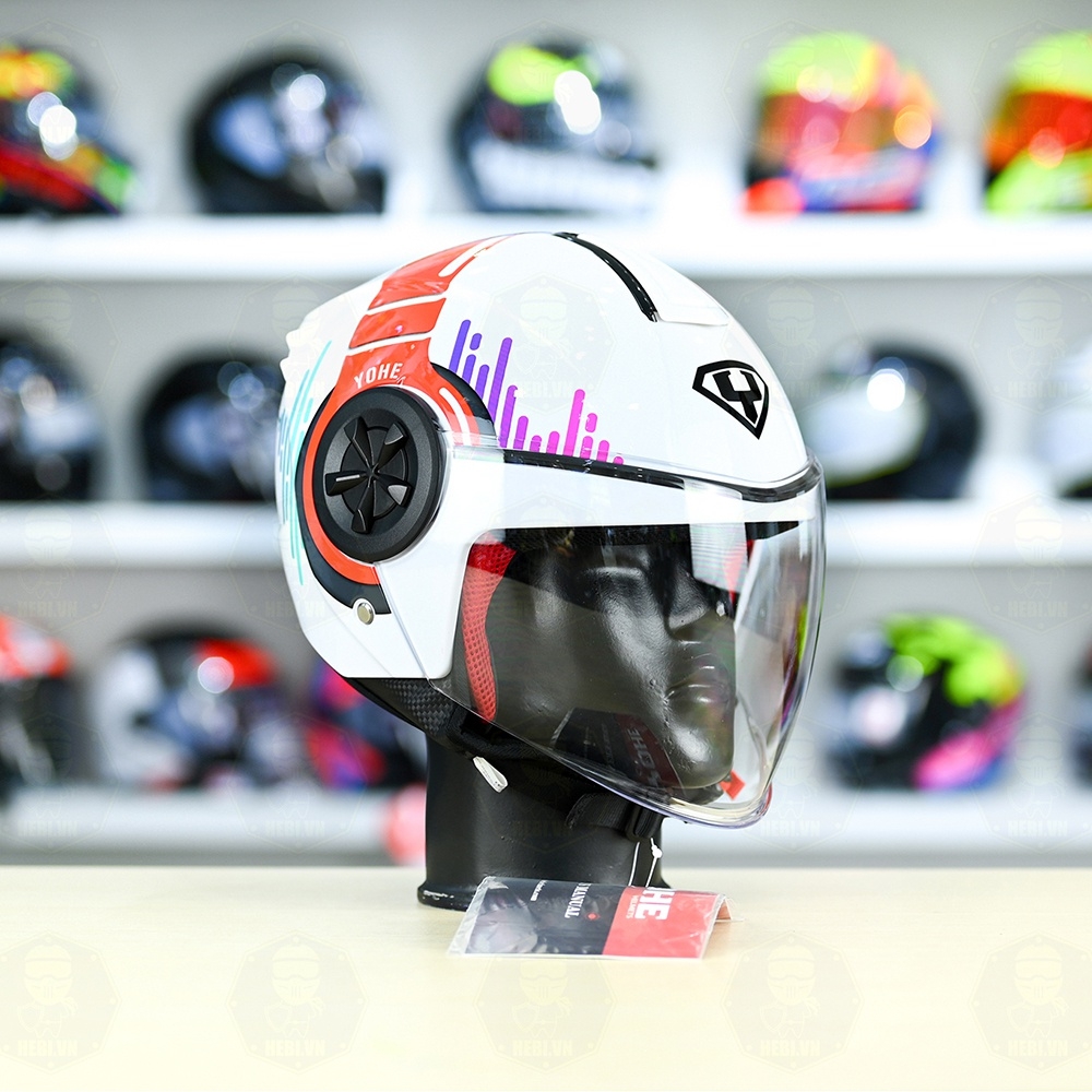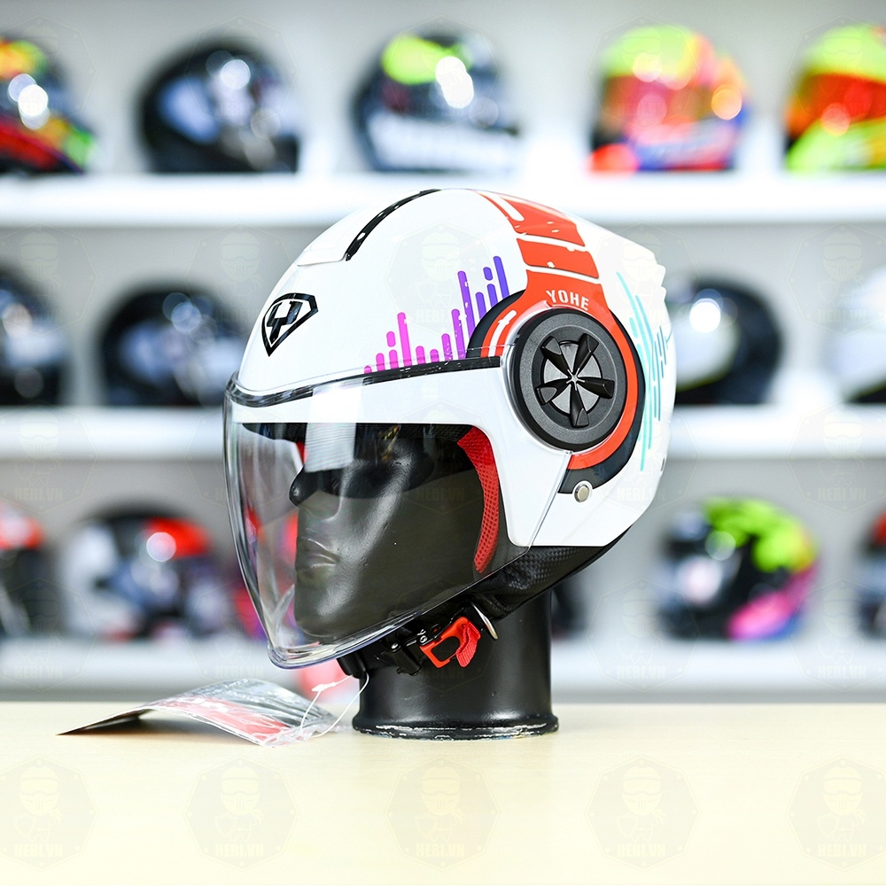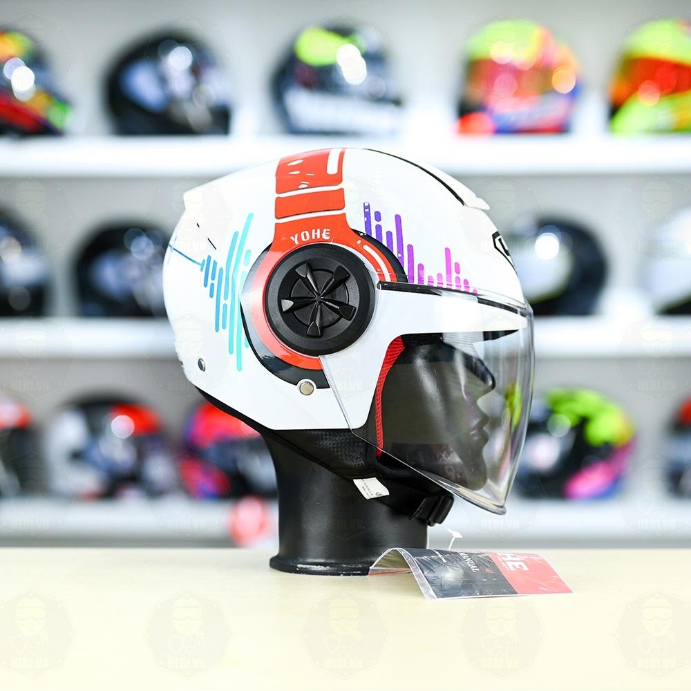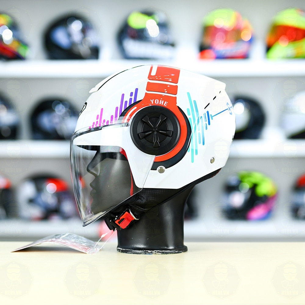 Mũ 3/4 YOHE 851 HP Trắng Đỏ Xanh Bóng FREESHIP