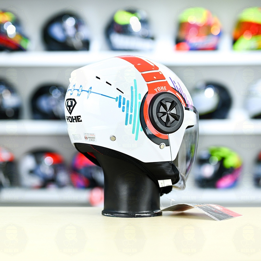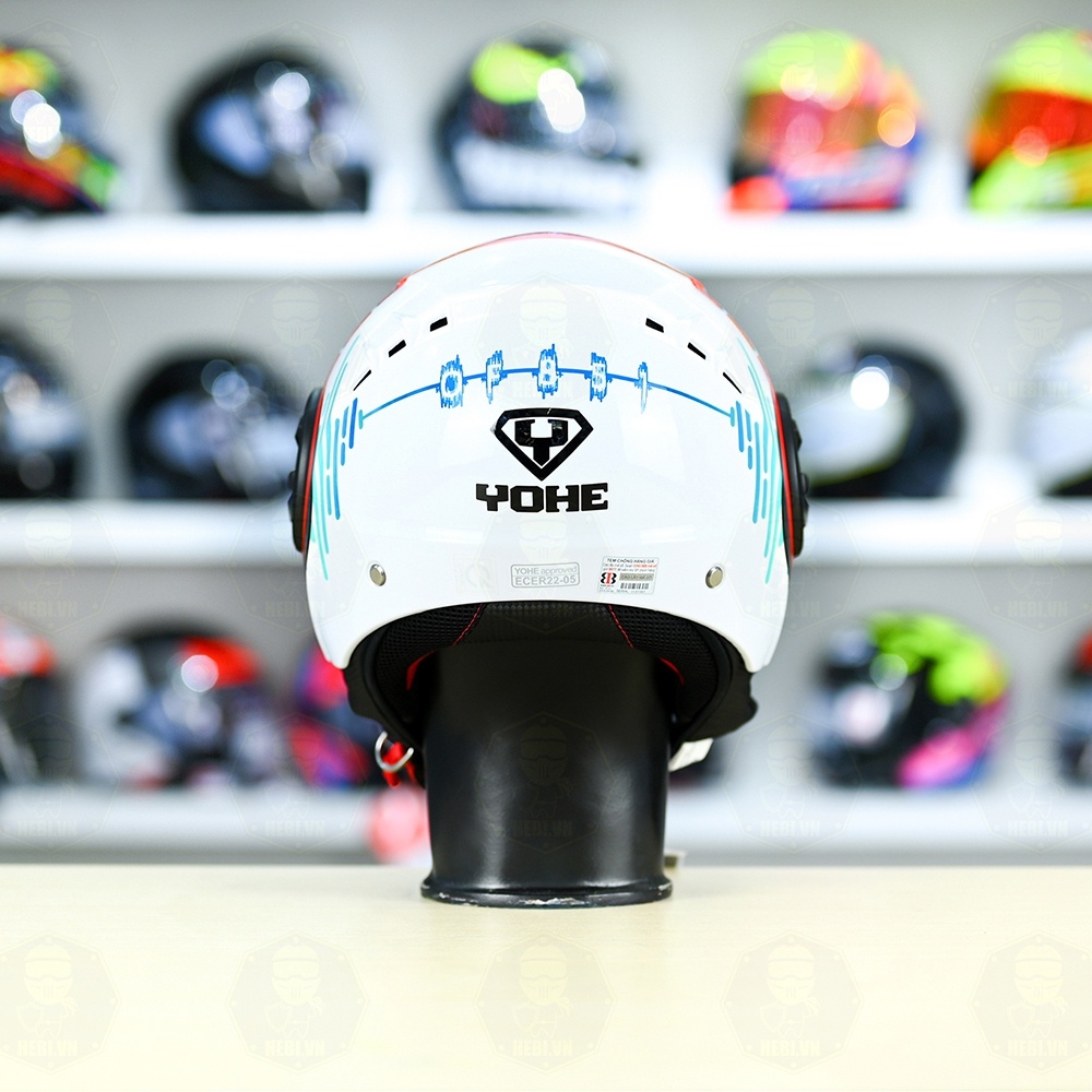 Mũ 3/4 YOHE 851 HP Trắng Đỏ Xanh Bóng