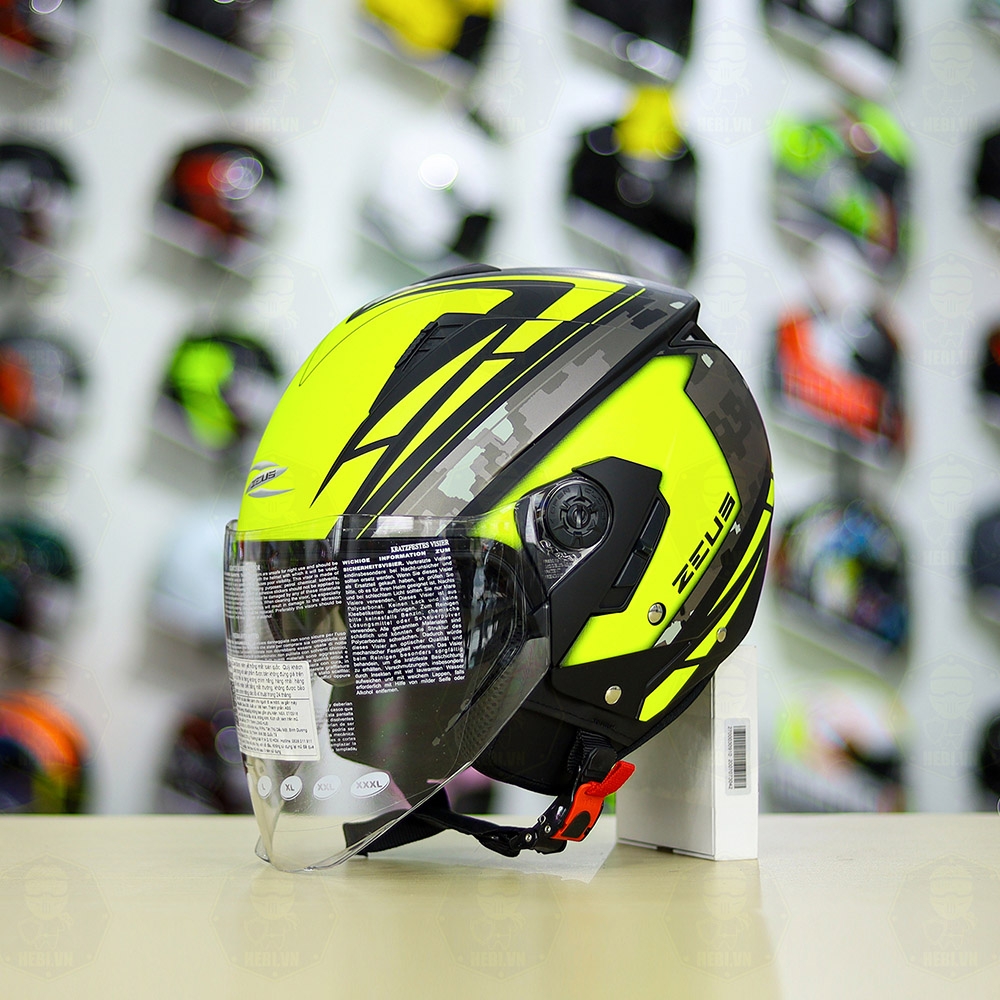 Mũ 3/4 Zeus 205 T1 Vàng Neon Camo Nhám FREESHIP
