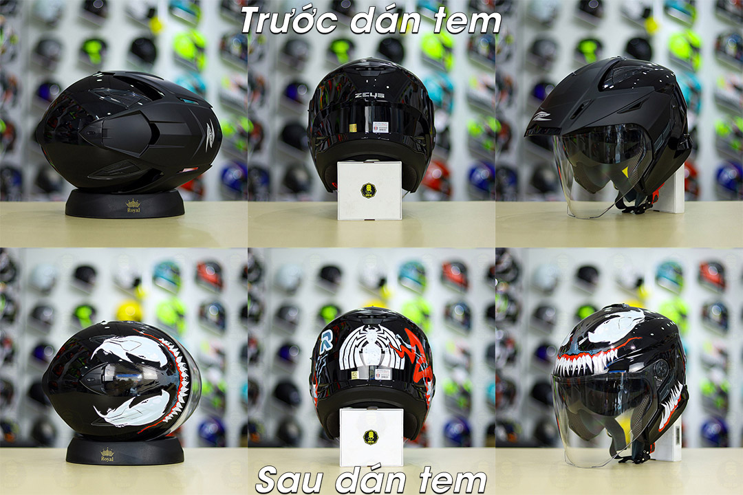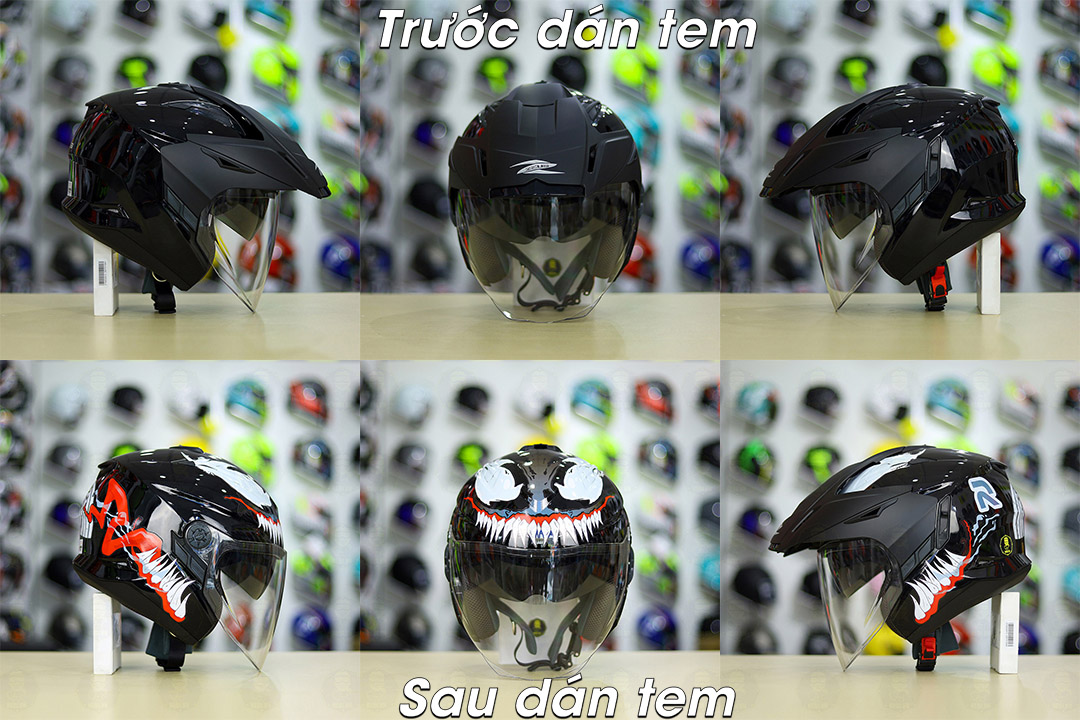 Đánh giá Mũ 3/4 Zeus 613B Đen Bóng + Dán Tem Decal Venom V2 FREESHIP