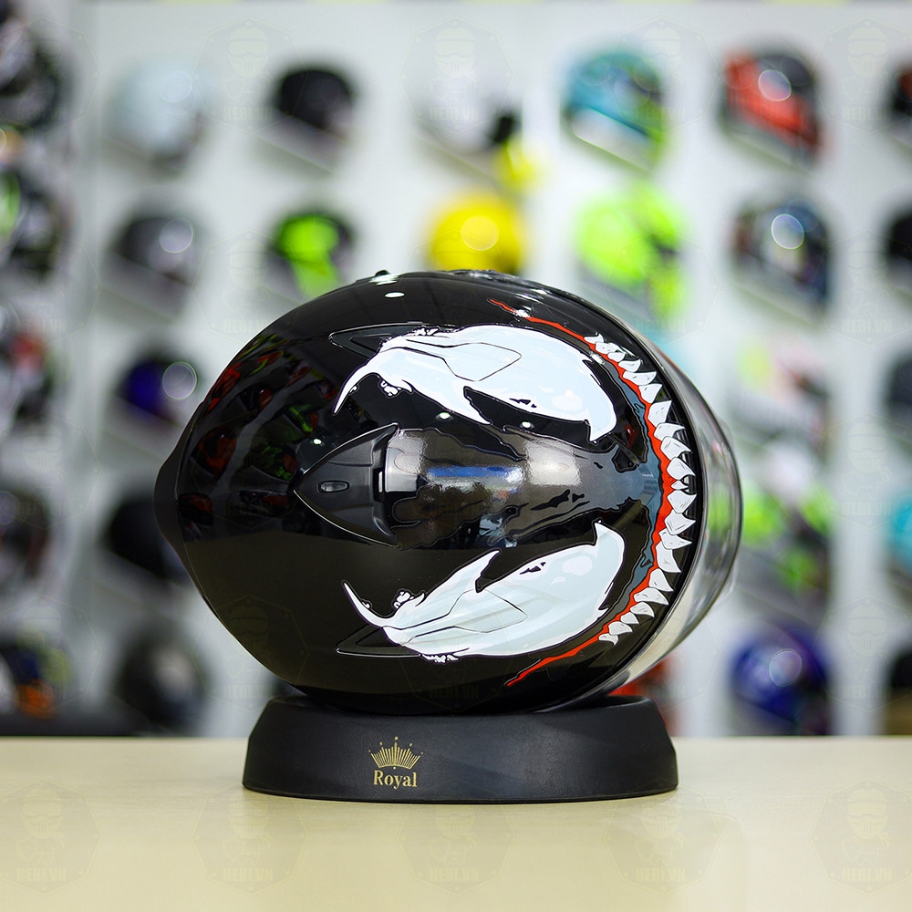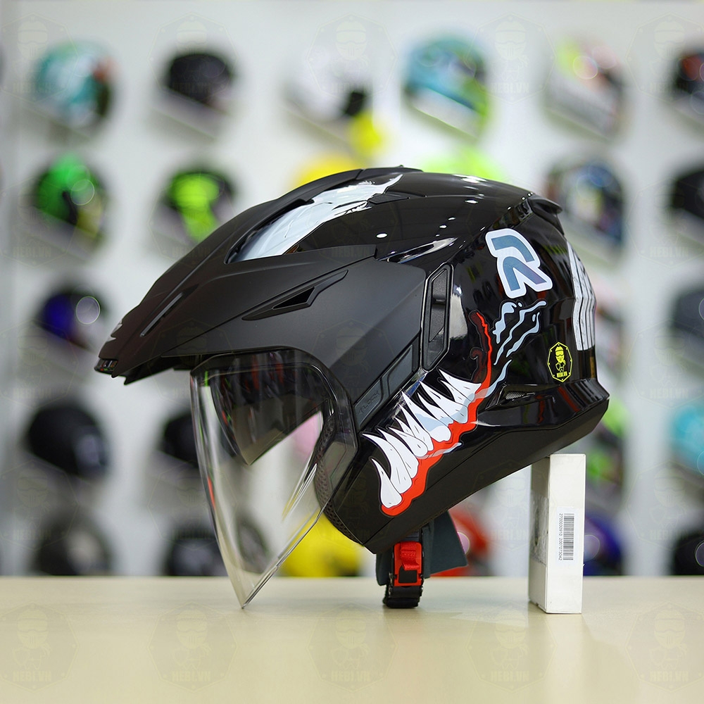 Mũ 3/4 Zeus 613B Đen Bóng + Dán Tem Decal Venom V2 FREESHIP