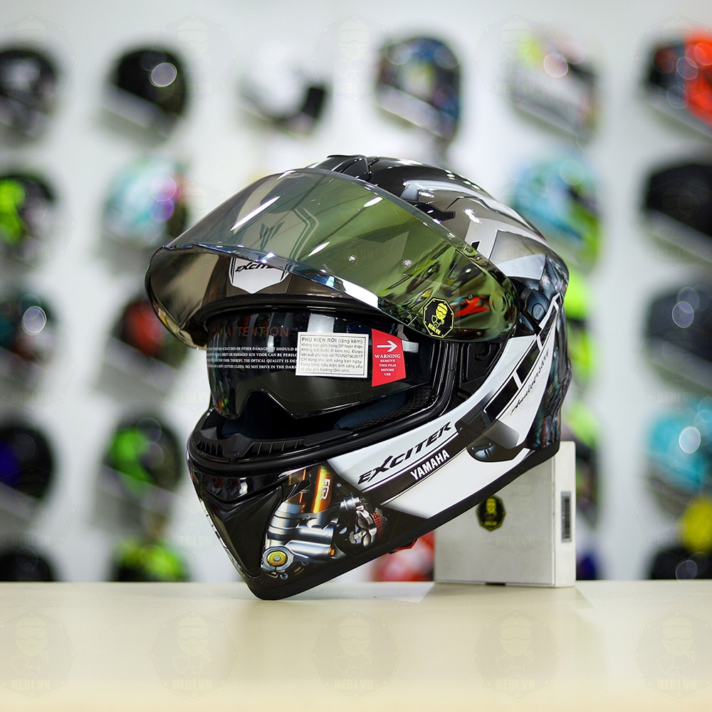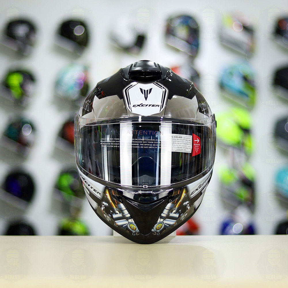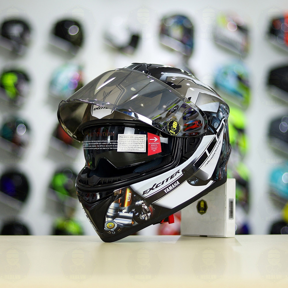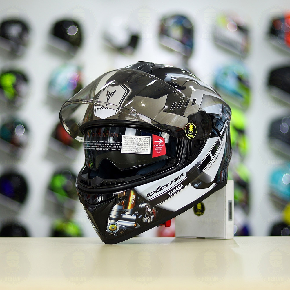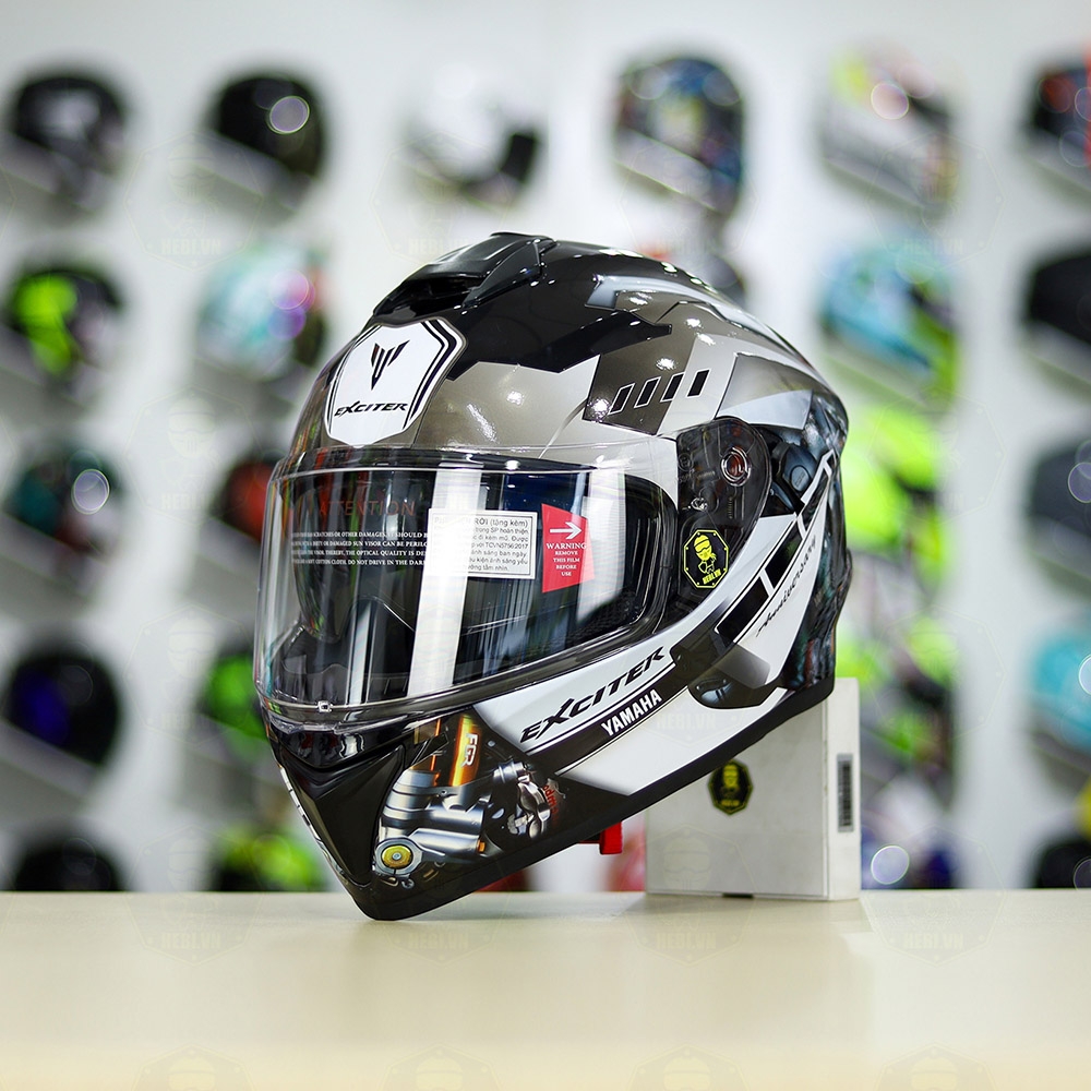 Mũ EGO E81 Đen Bóng + Dán Tem Decal Yamaha EXCITER Xám FREESHIP