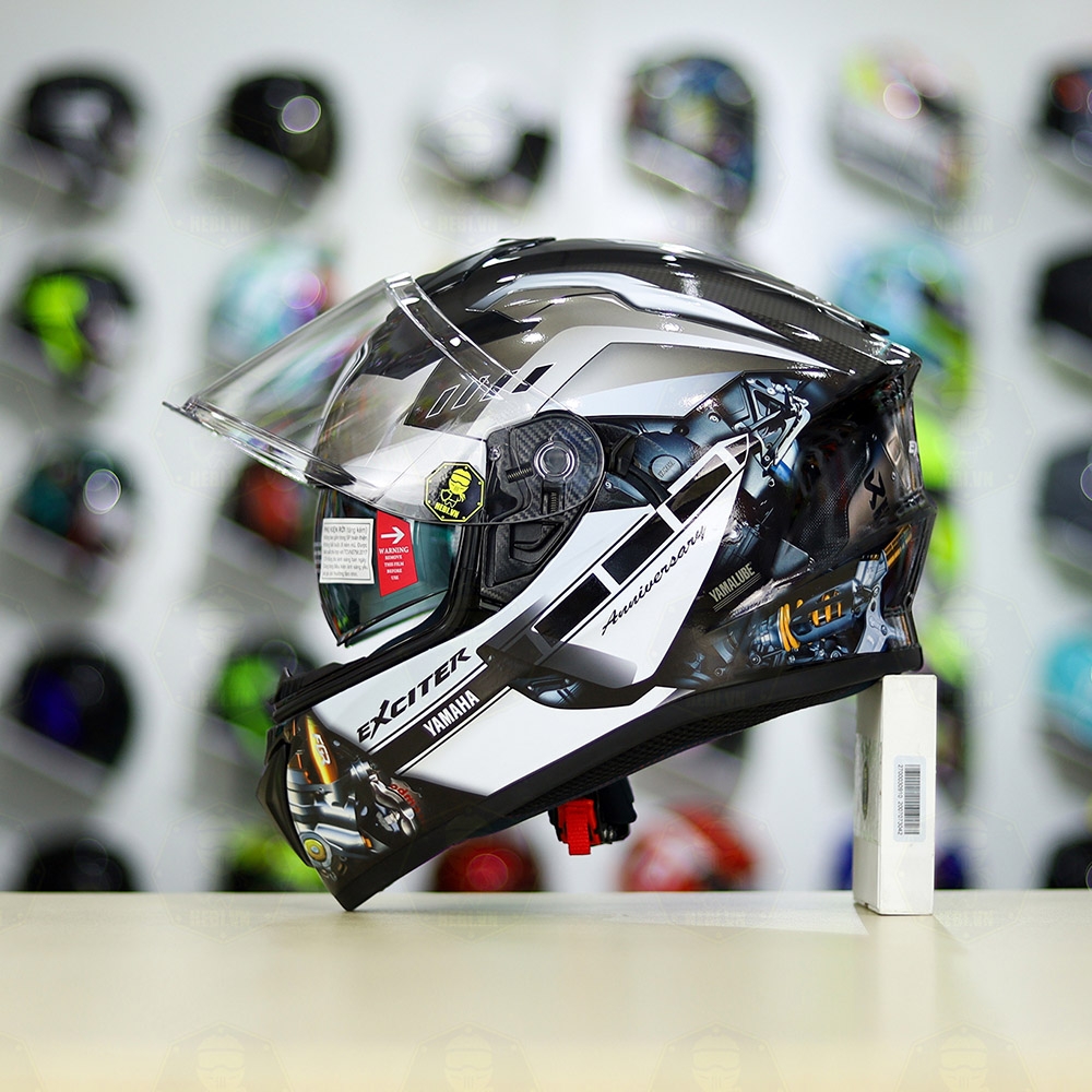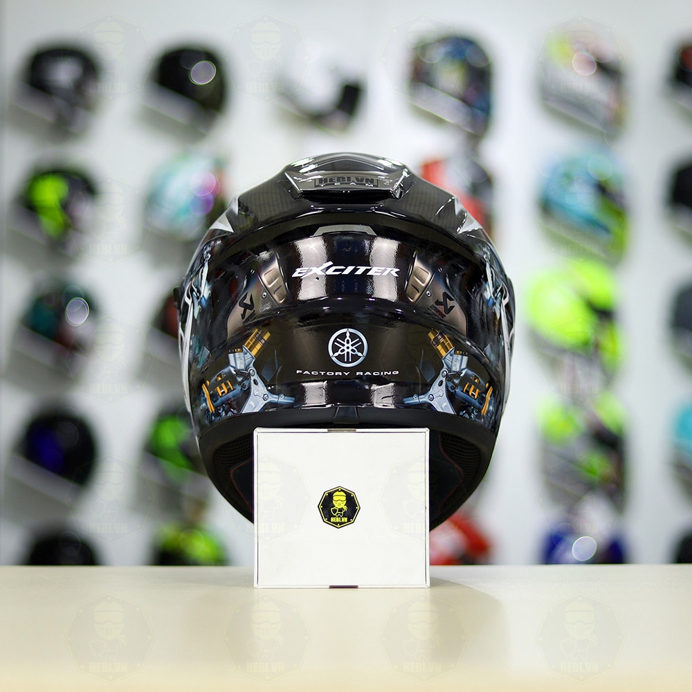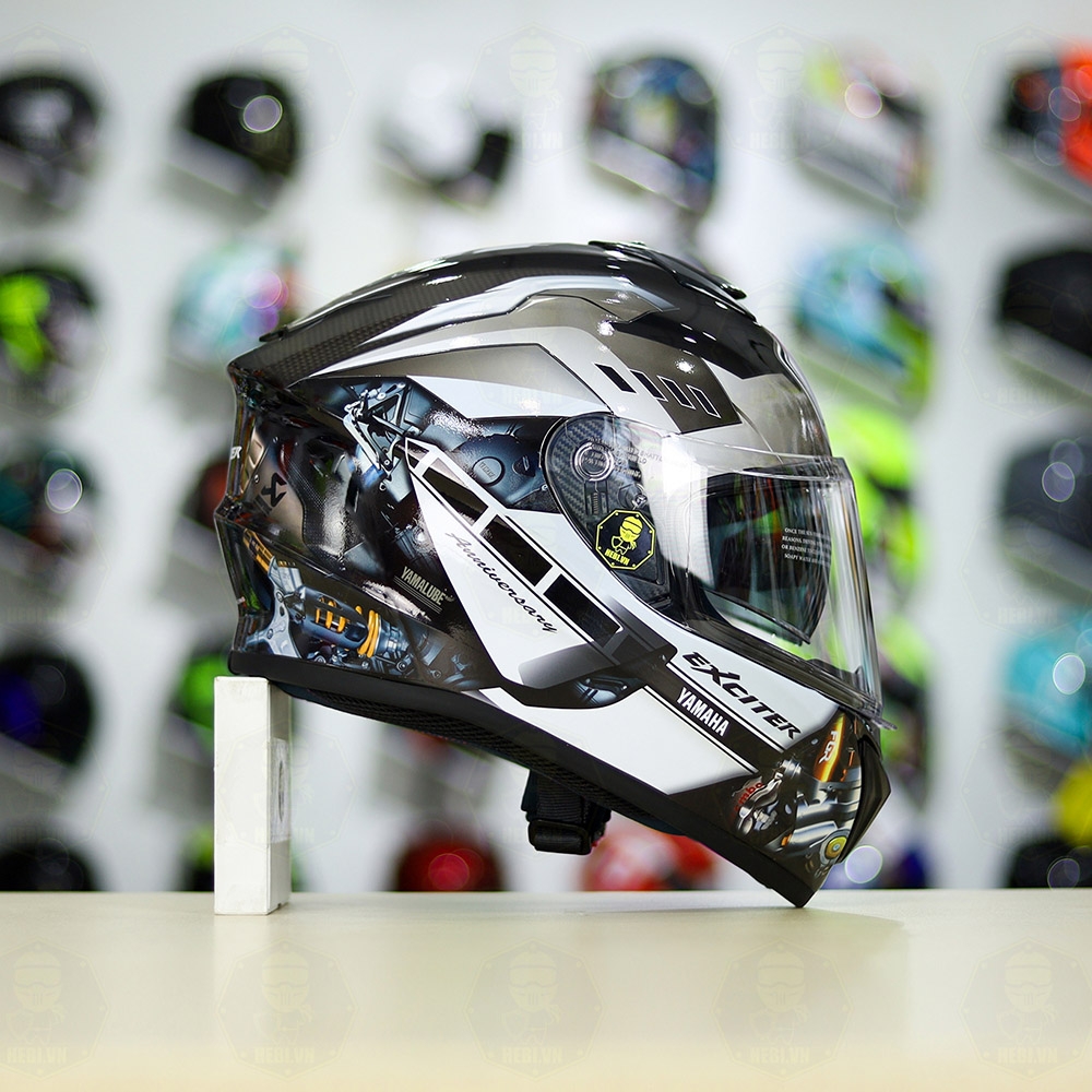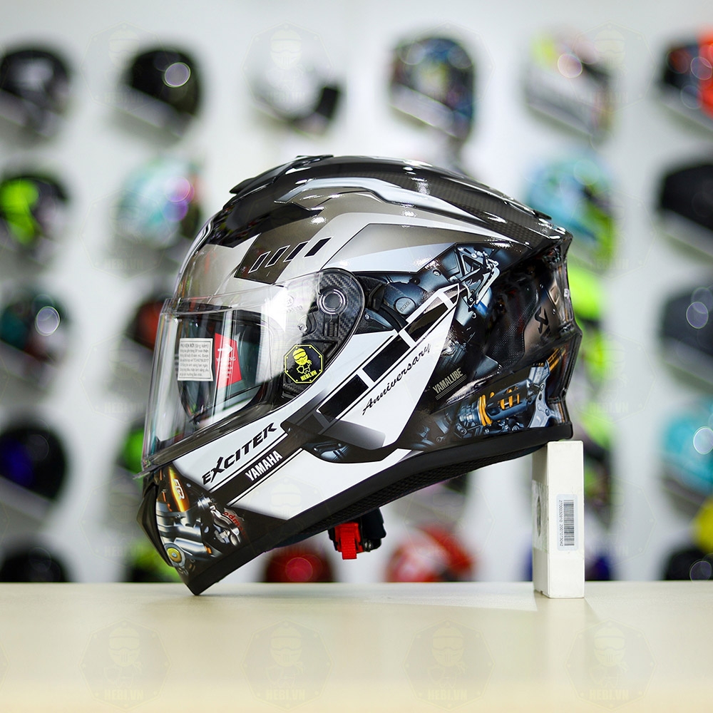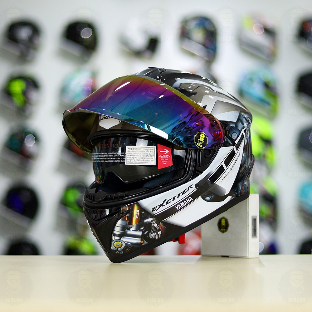 Mũ EGO E81 Đen Bóng + Dán Tem Decal Yamaha EXCITER Xám FREESHIP