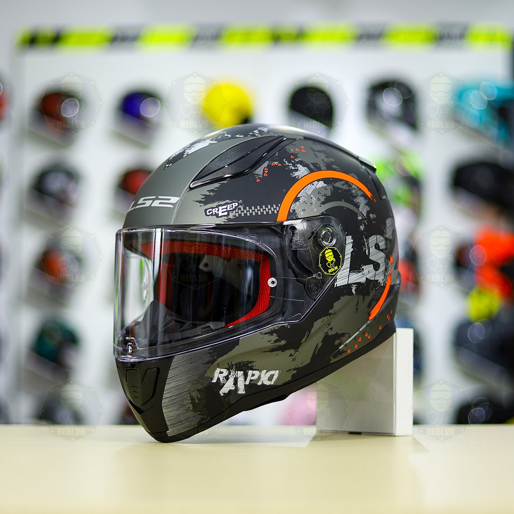 Mũ Fullface LS2 FF353 CREEP Xám Cam Nhám FREESHIP