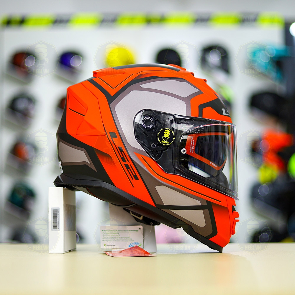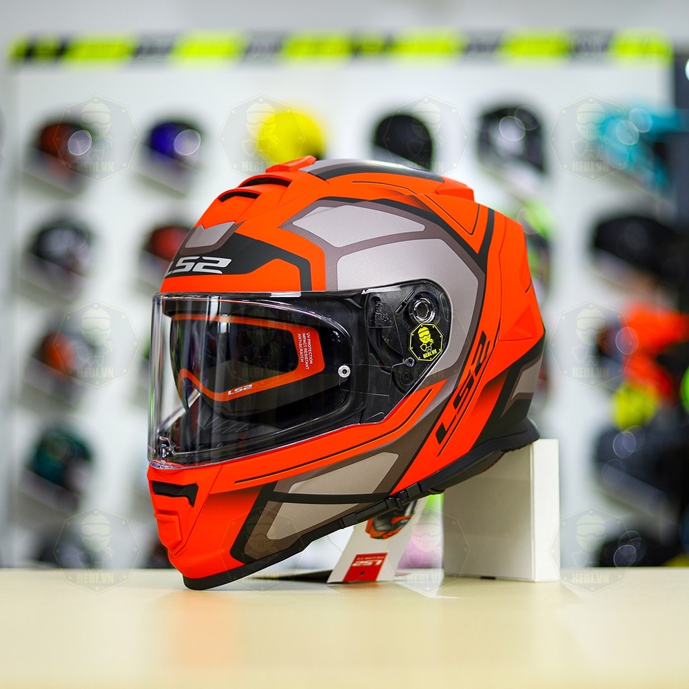 Phần vỏ ngoài LS2 FF800 Storm làm từ chất liệu KPA độc quyền, có 2 khuôn vỏ cho size S (trọng lượng 1.440g) < M - L - XL - XXL dùng chung khuôn vỏ to (trọng lượng 1.550 - 1.600g). Phần kính của mũ này được hãng dùng chung loại kính với LS2 FF320 và LS2 FF353, làm từ chất liệu PC siêu bền, được bảo hành nứt vỡ 1 năm( chỉ có tại Hebi). Kính dùng chất liệu tinh khiết, trong các bài thử truyền sáng độc lập cho độ truyền sáng lên 94%( hơn cả kính của Shark và AGV chỉ 93%). Đặc biệt hãng còn tặng cả Pinlock cấp độ 70, giúp bạn vẫn đảm bảo tầm nhìn tốt, không bị mờ mặt trong của kính khi đi trong trời lạnh, trời mưa hay sương mù.