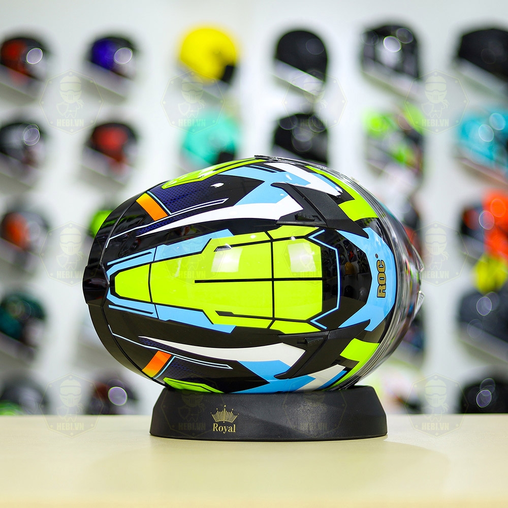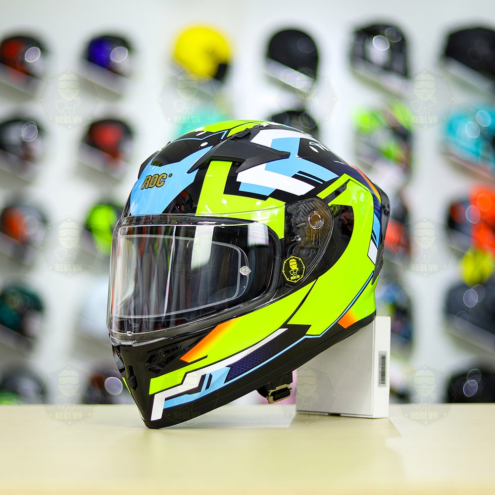 Mũ Fullface ROC 01 978 Tem V2 Vàng Xanh Lido Bóng