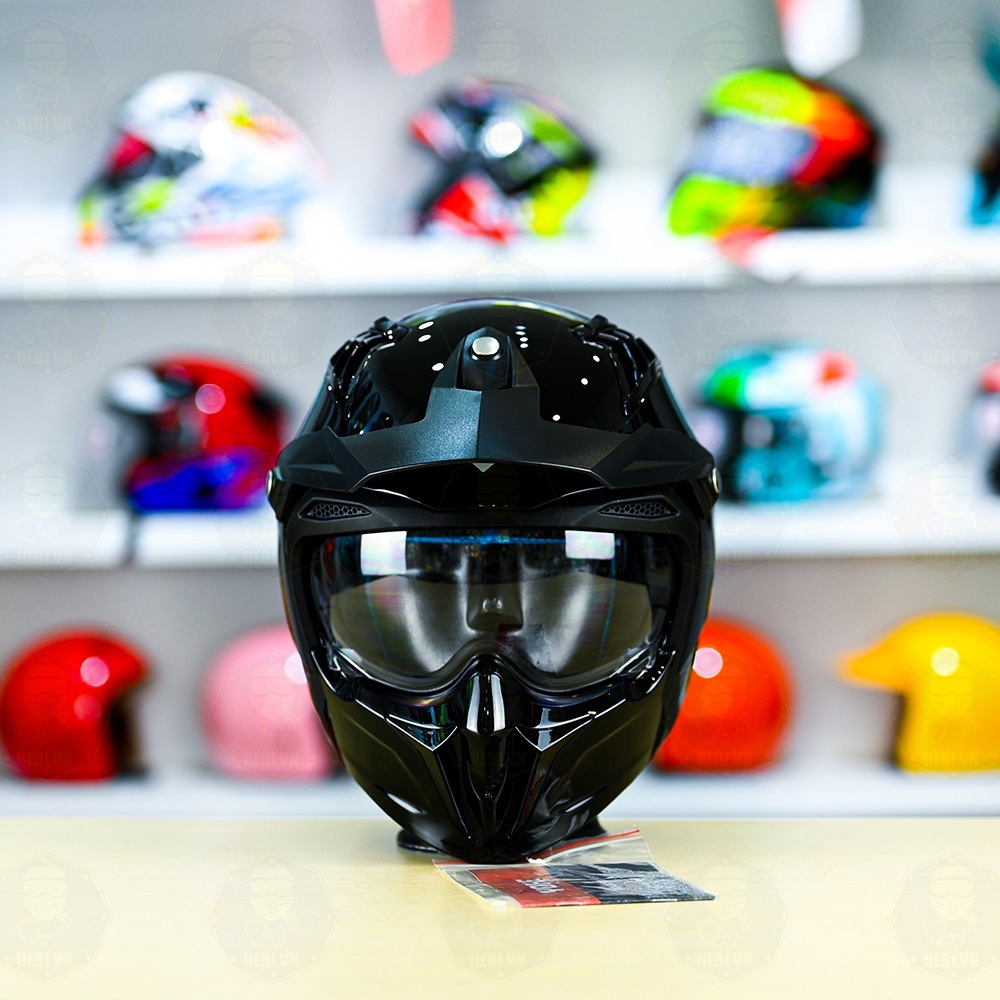 Combo Mũ EGO E5 Đen Bóng - Mặt Nạ- Kính Màu - Freeship