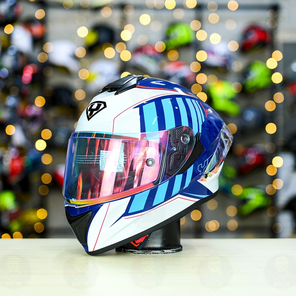 Đánh giá Mũ Fullface Yohe 981 Trắng Xanh Bóng + đuôi gió Pista GPRR + Kính Revo Cam FREESHIP