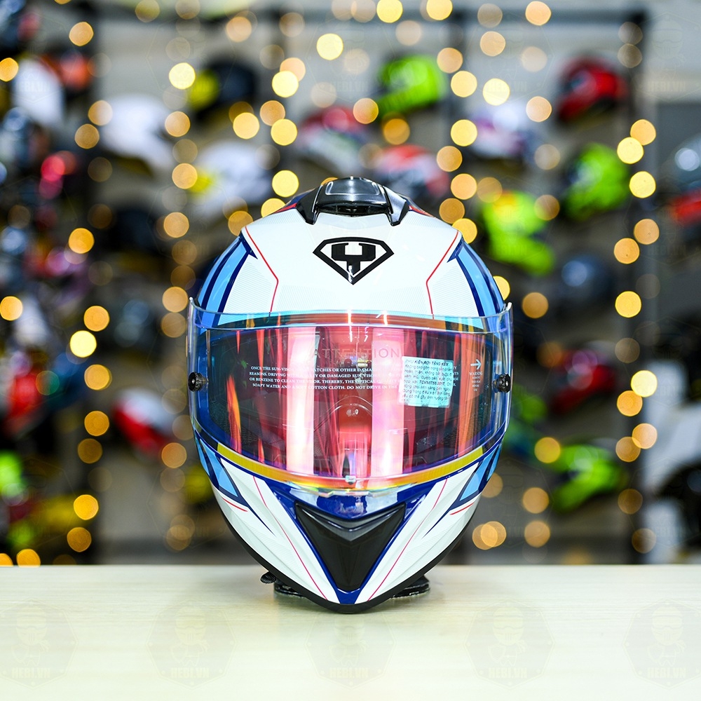 Mũ Fullface Yohe 981 Trắng Xanh Bóng + đuôi gió Pista GPRR + Kính Revo Cam FREESHIP