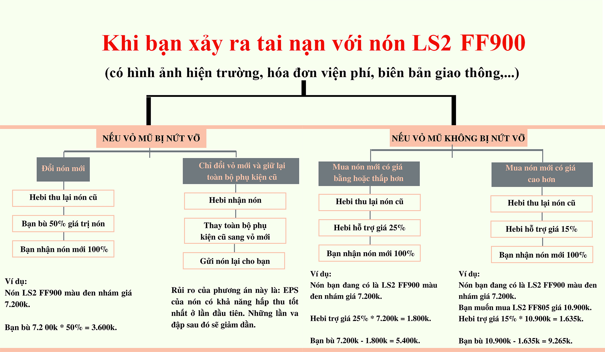 Theo công thức trong video, khi bạn xảy ra tai nạn với nón LS2 FF805 (có hình ảnh hiện trường, hóa đơn viện phí, biên bản giao thông,...). Thì...