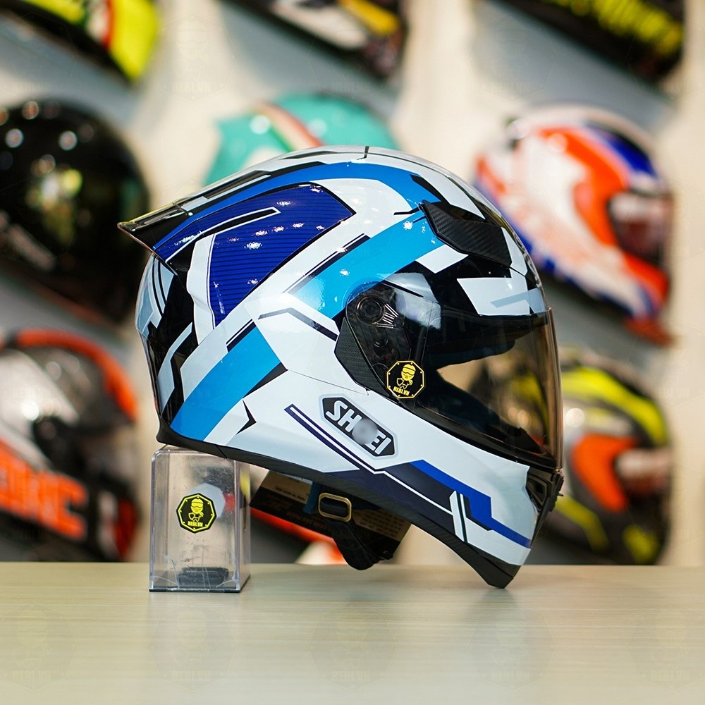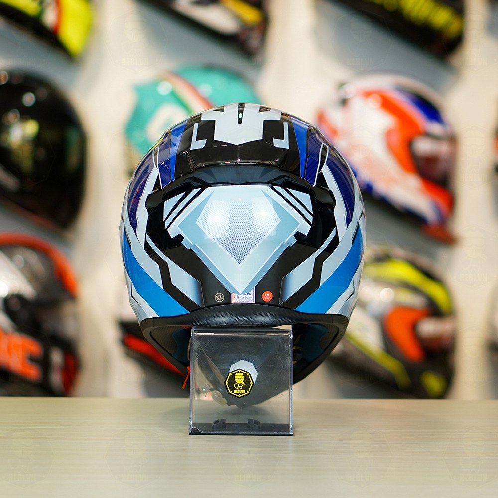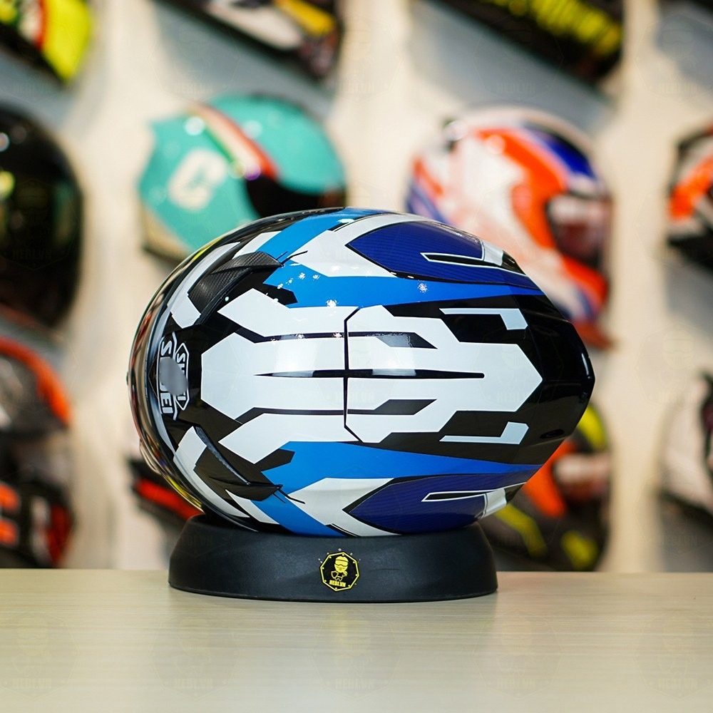 Mũ Royal M138b Đen Bóng + Dán Tem Decal Shoei BRINK Trắng Xanh Cực Đẹp