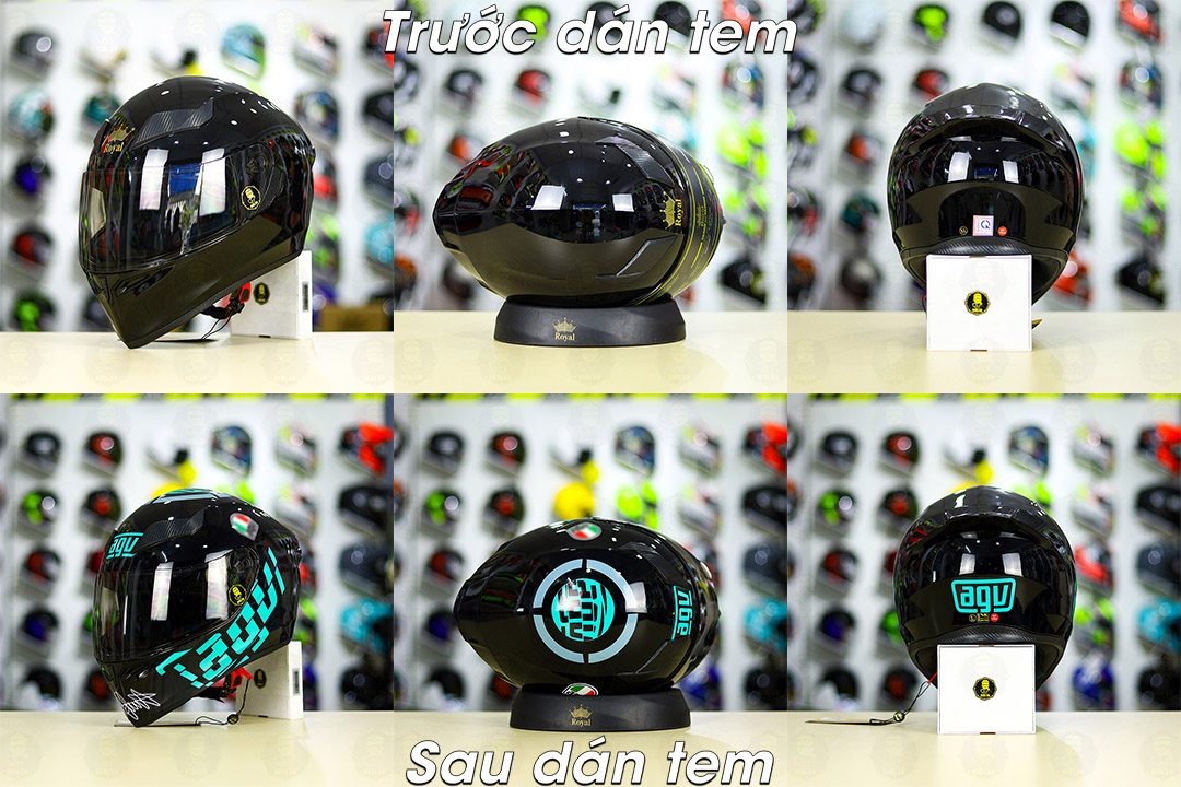 Mũ Royal M138b Đen Bóng + Dán Tem Decal AGV V1 Myth Xanh Ngọc