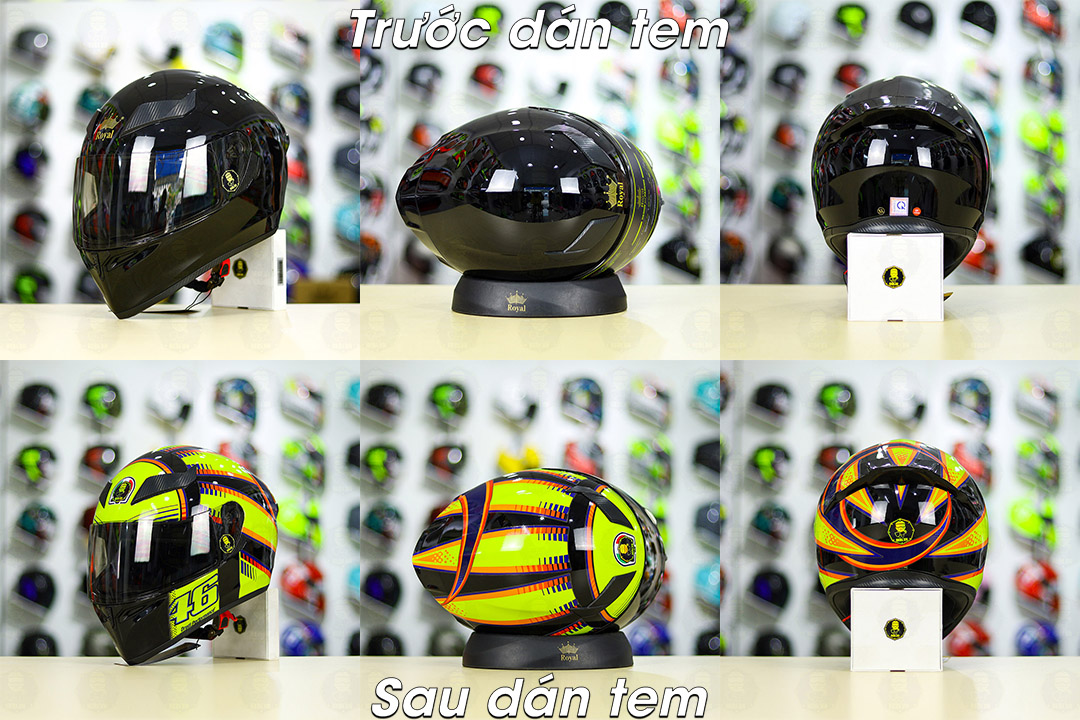 Mũ Royal M138b Đen Bóng + Dán Tem Decal AGV SOLELUNA Vàng