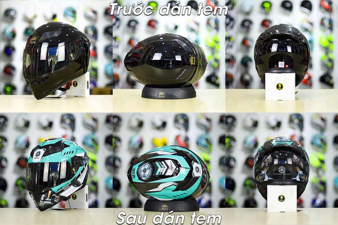Tiết kiệm ngay 120k khi mua combo mũ Fullface Royal M138b màu đen bóng, dán thêm tem decal cực độc tại Hebi.vn.