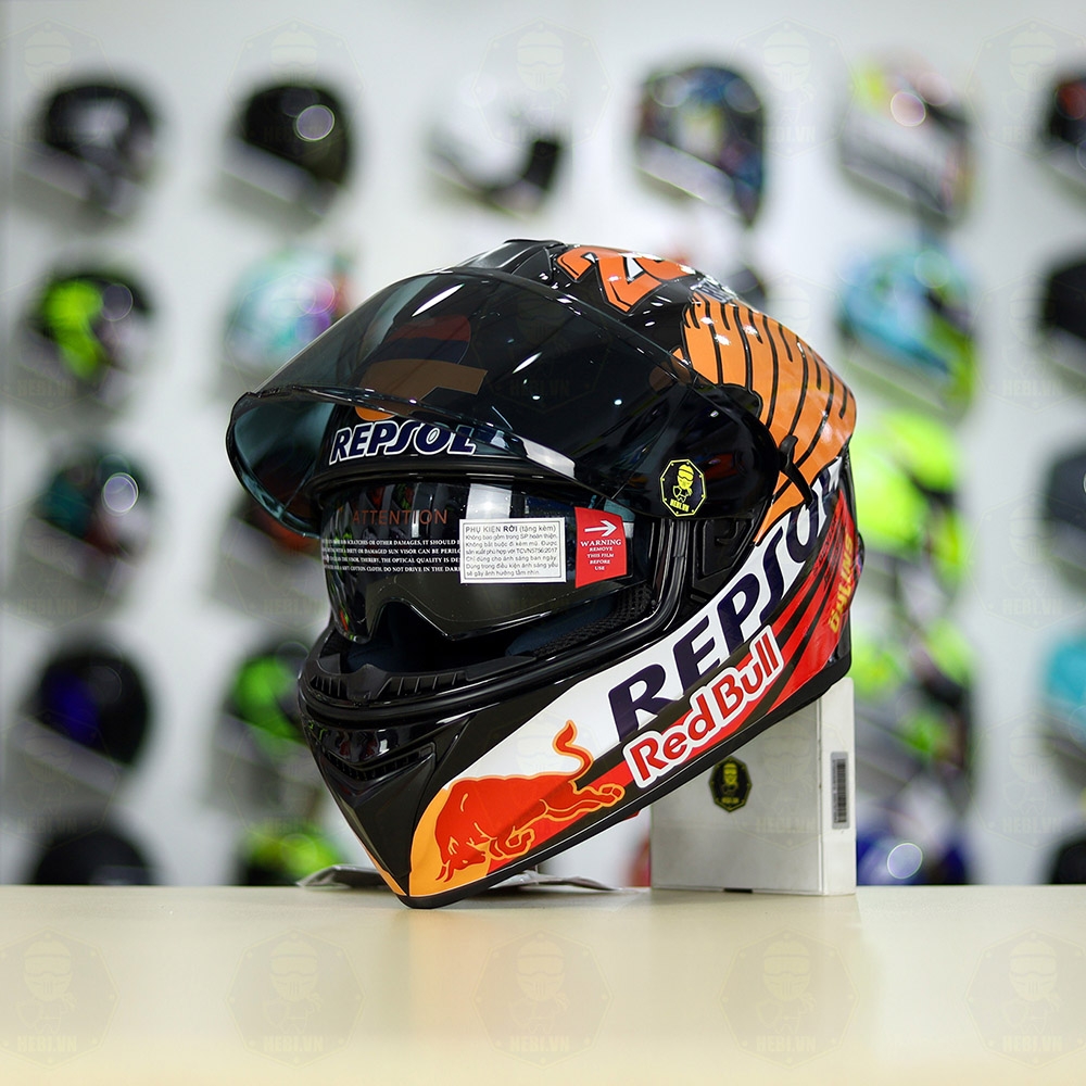 Mũ Fullface EGO E81 Đen Bóng + Dán Tem Decal Honda REPSOL FREESHIP