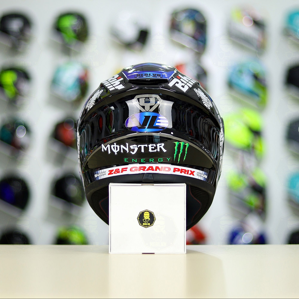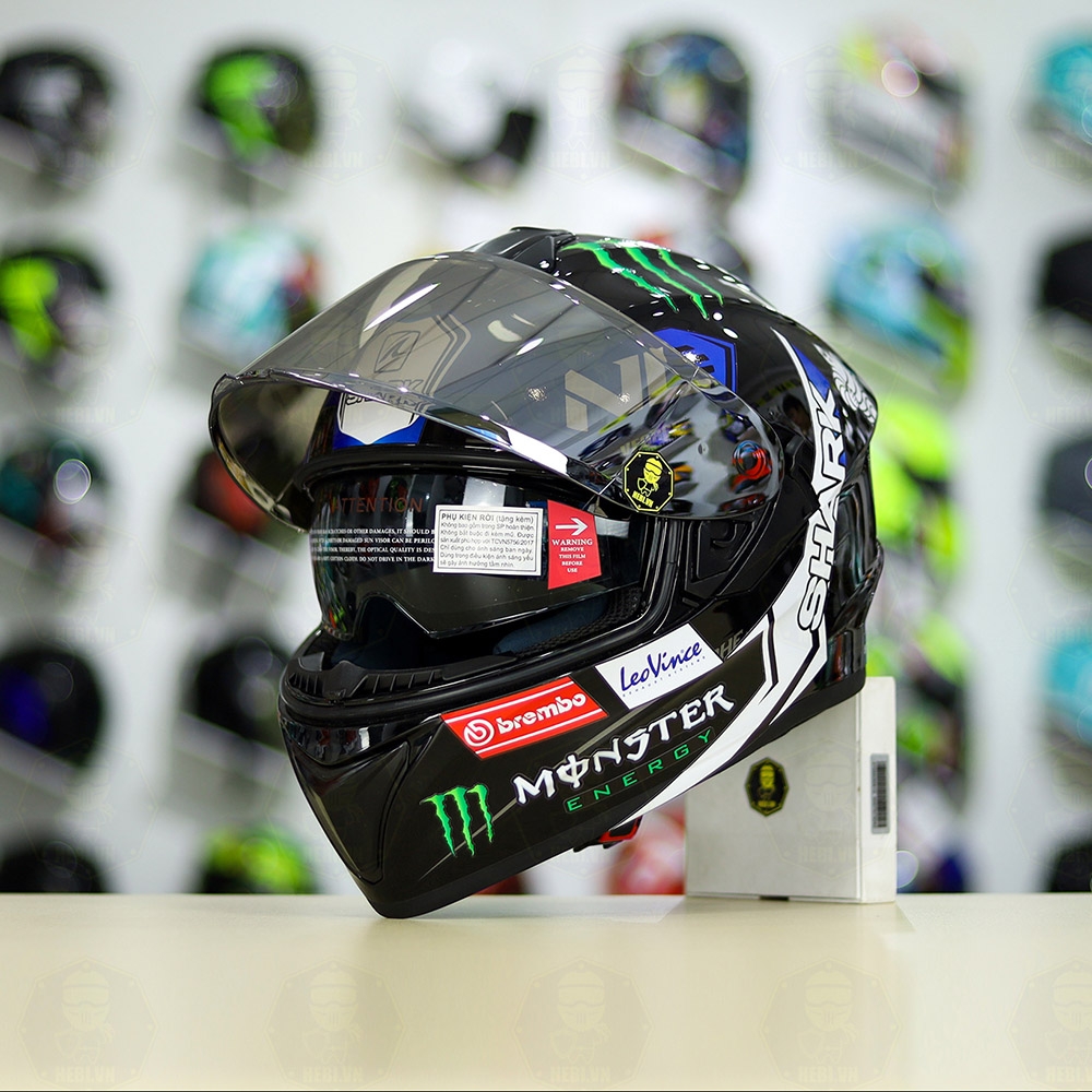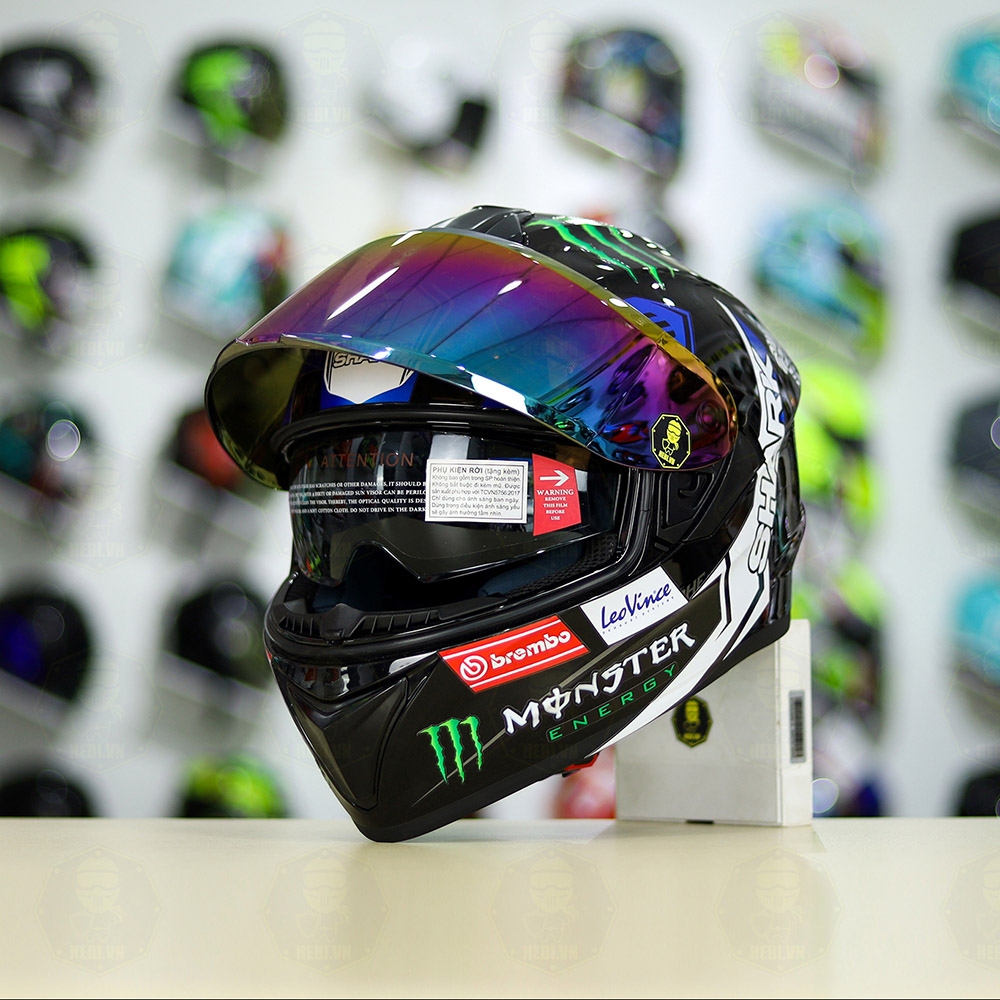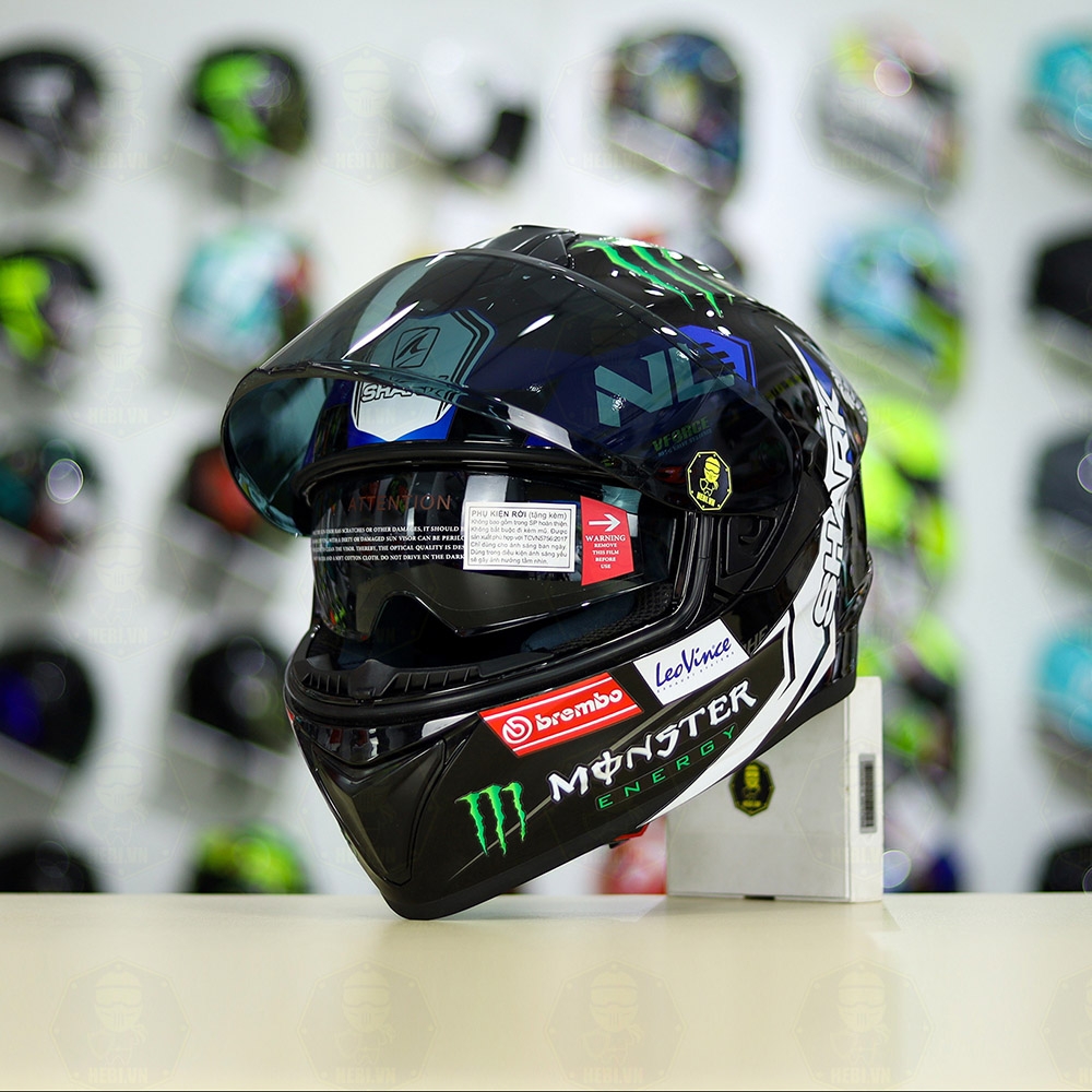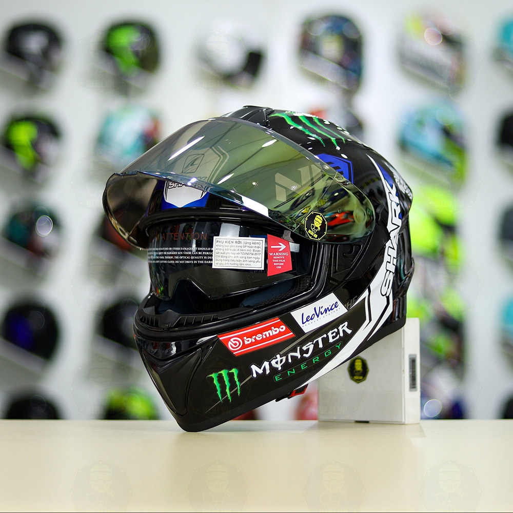 Mũ Fullface EGO E81 Đen Bóng + Dán Tem SHARK Monster Xanh FREESHIP