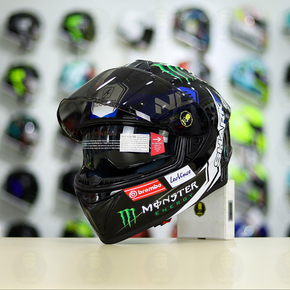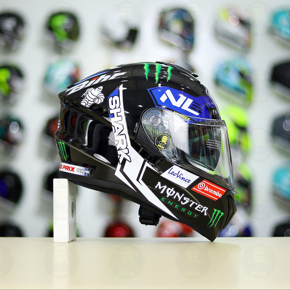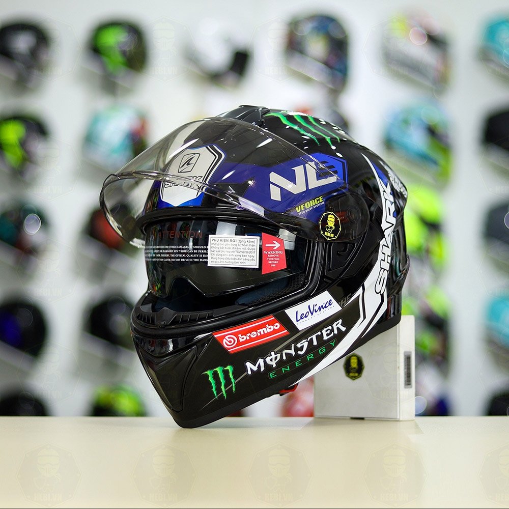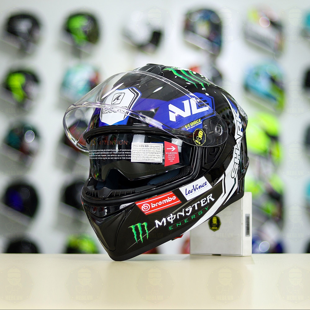 Mũ Fullface EGO E81 Đen Bóng + Dán Tem SHARK Monster Xanh FREESHIP