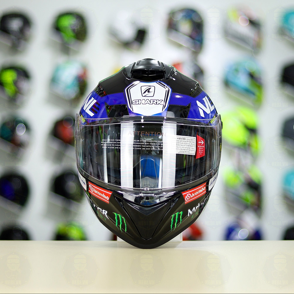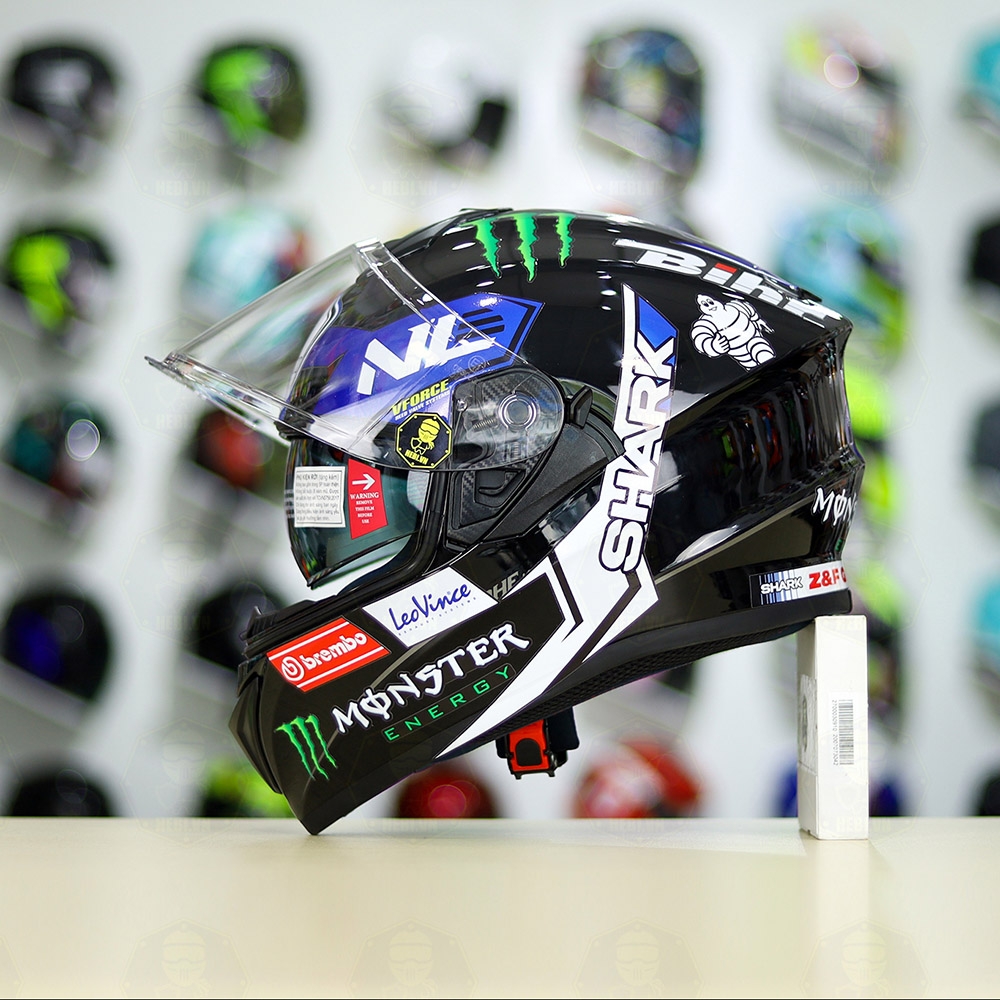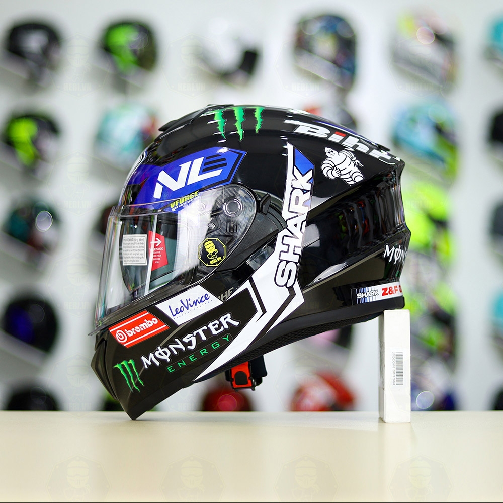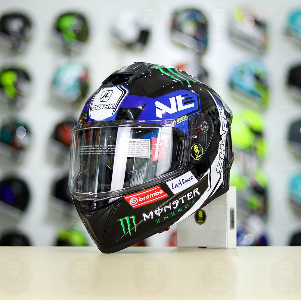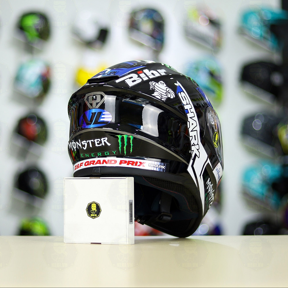 Mũ Fullface EGO E81 Đen Bóng + Dán Tem SHARK Monster Xanh FREESHIP