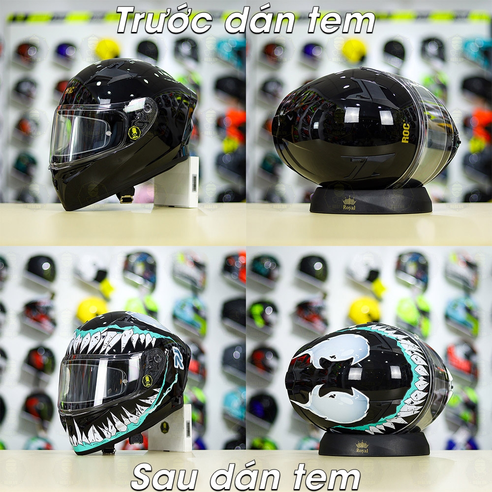 Đây là mẫu tem rời, che phủ khoảng 60% bề mặt nón (tùy thuộc vào màu zin và kiểu dáng của nón). Và dán đẹp nhất là cho nón có nền màu đen bóng.