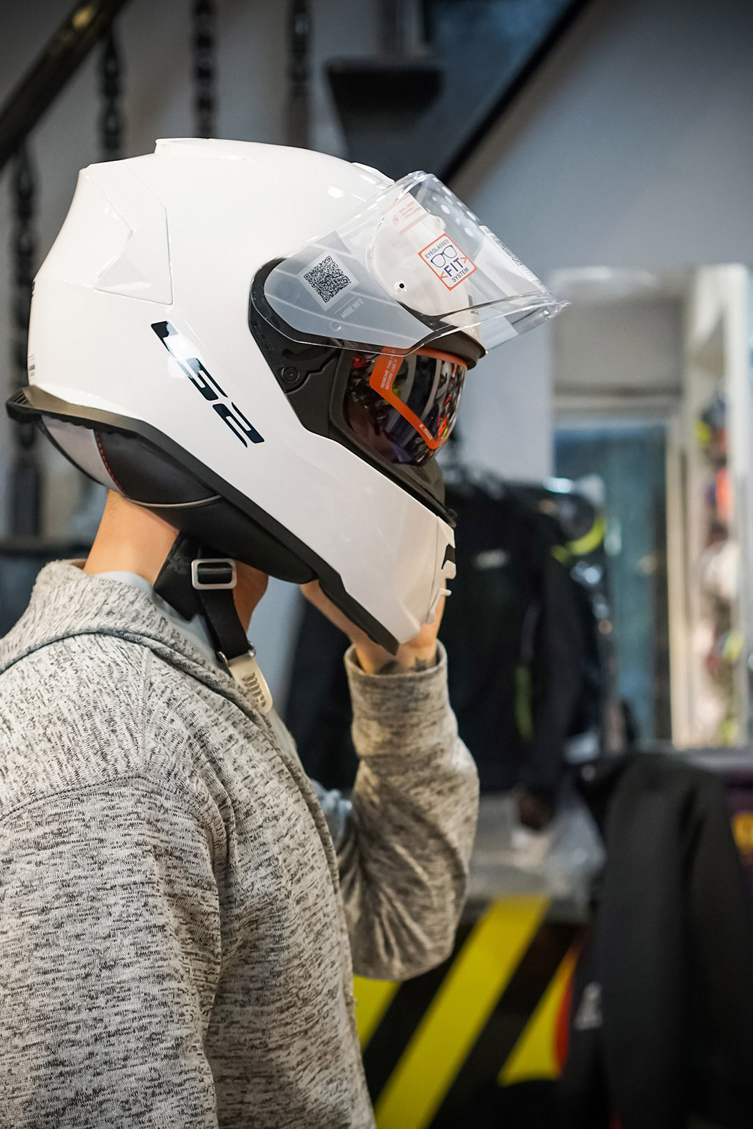 Sự cải thiện của phần kính phụ mang đến trải nghiệm tuyệt vời cho người dùng. Có thể nói đây là điểm mấu chốt khác biệt so với LS2 FF320. Trước đây hầu như khách nào cũng phàn nàn về kính âm của mẫu FF320, vì nó che lưng lửng, bị hỡ nhiều và nằm xa mắt, gây ra góc khúc xạ lớn, hình ảnh qua kính bị lệch rất nhiều gây nguy hiểm khi vào cua. Nhưng mẫu nón mới này đã khắc phục triệt để, phần kính to hơn, bo cong theo tầm mắt và khoảng cách gần mắt hơn, cho cảm giác nhìn rất thực, giảm sai sót trong phán đoán của người đội.